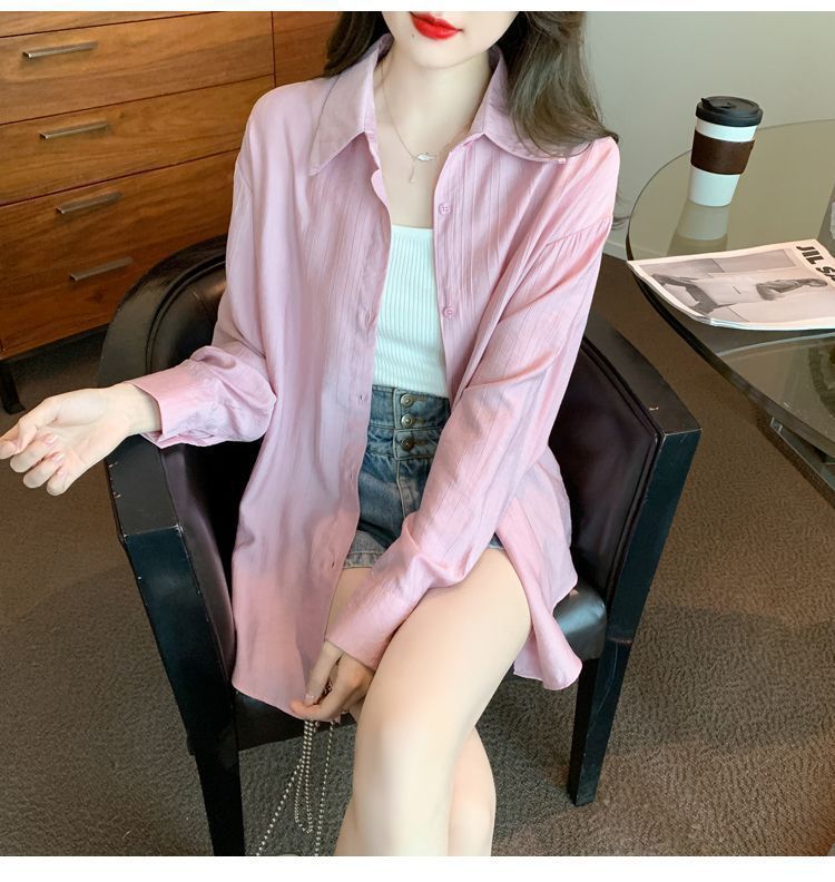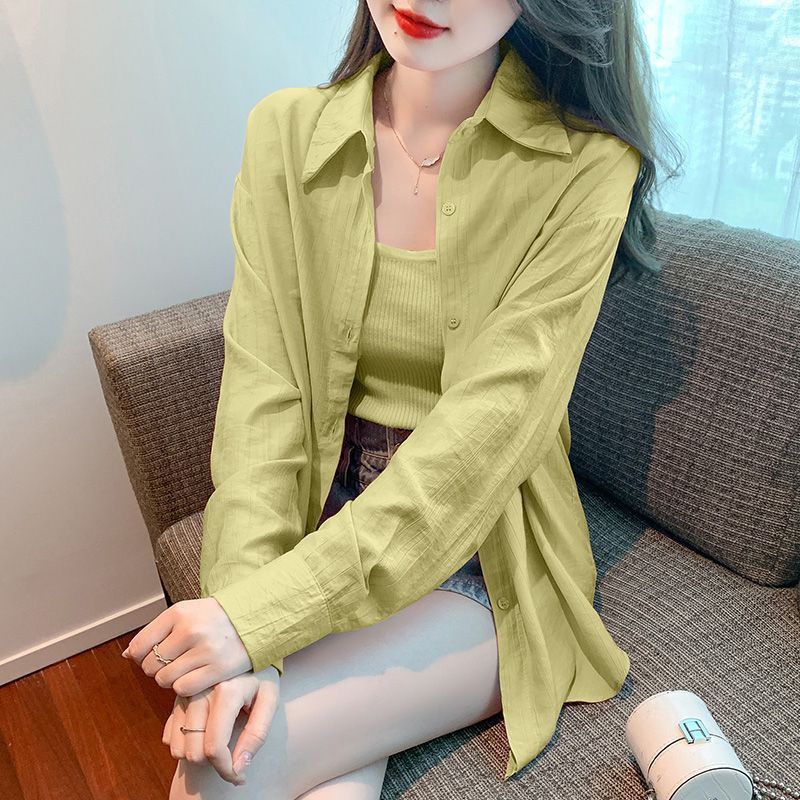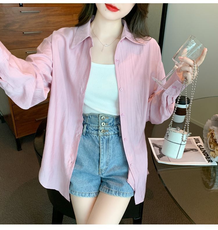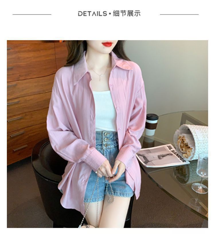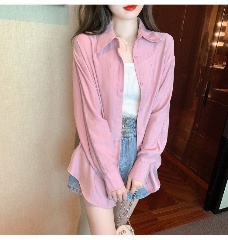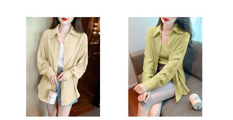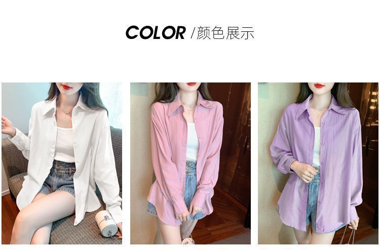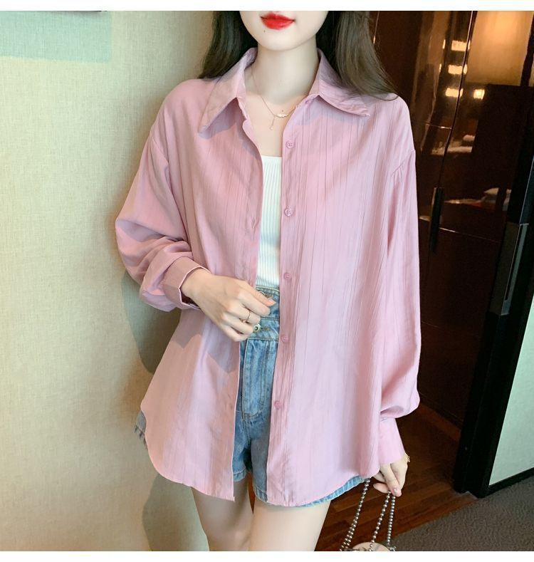 칼라 셔츠 태양 보호 의류 여성의 봄과 여름 2024 여름 새로운 느슨한 긴 소매 태양 보호 의류 카디건 탑