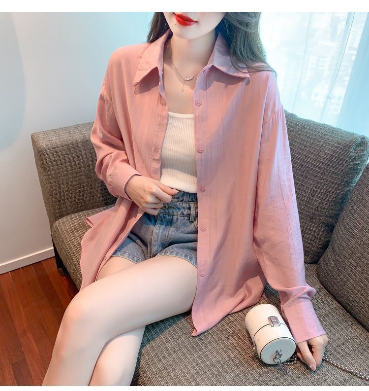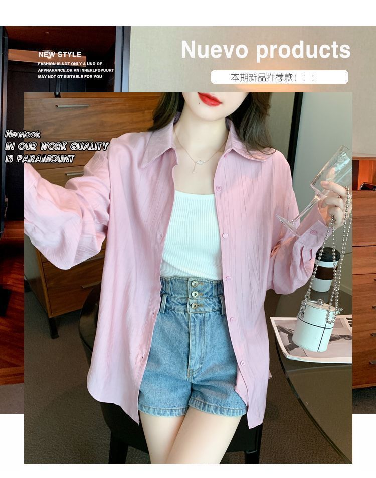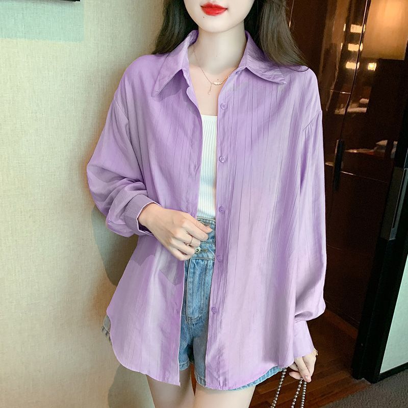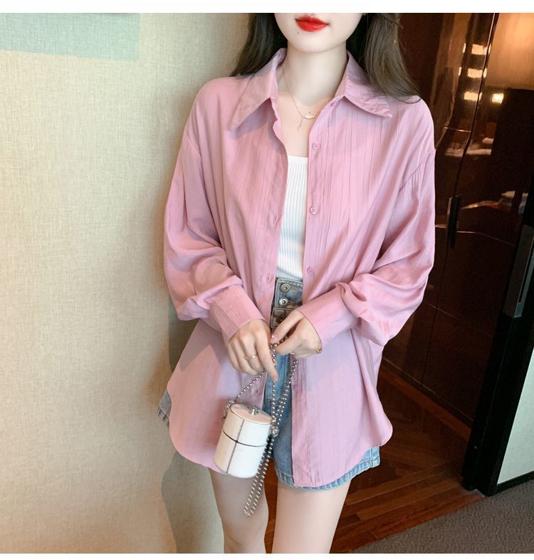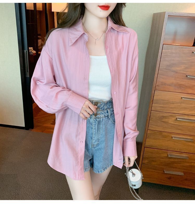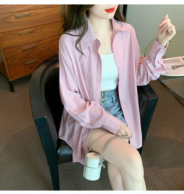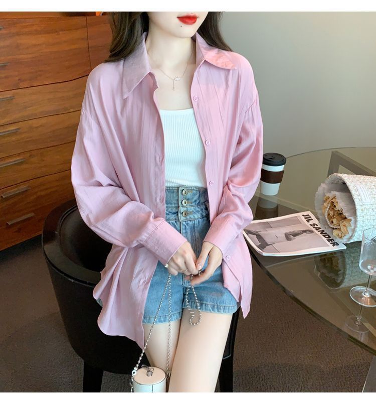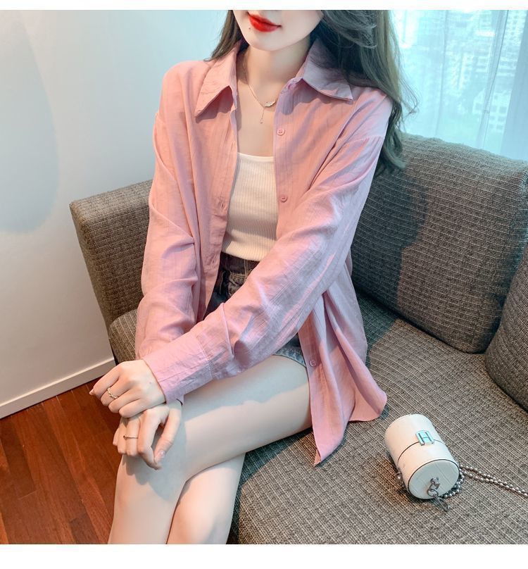 칼라 셔츠 태양 보호 의류 여성의 봄과 여름 2024 여름 새로운 느슨한 긴 소매 태양 보호 의류 카디건 탑