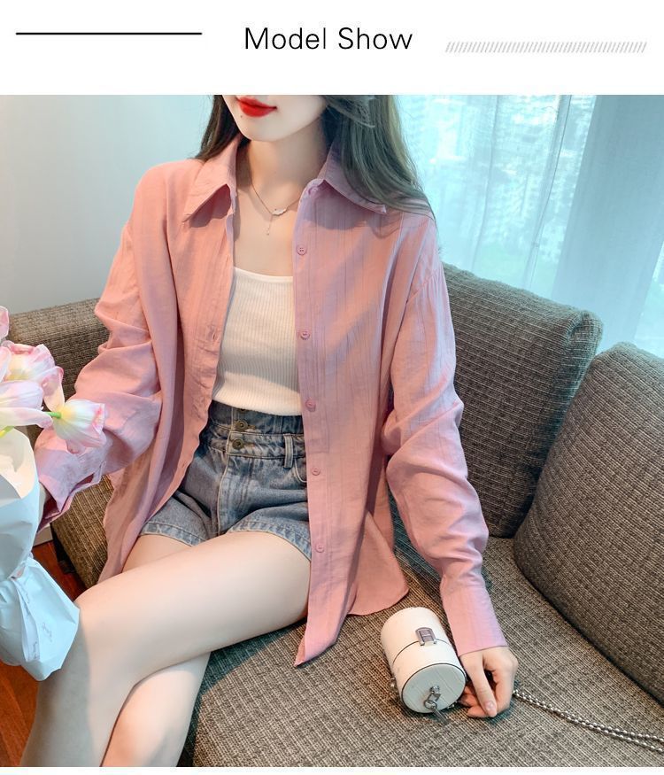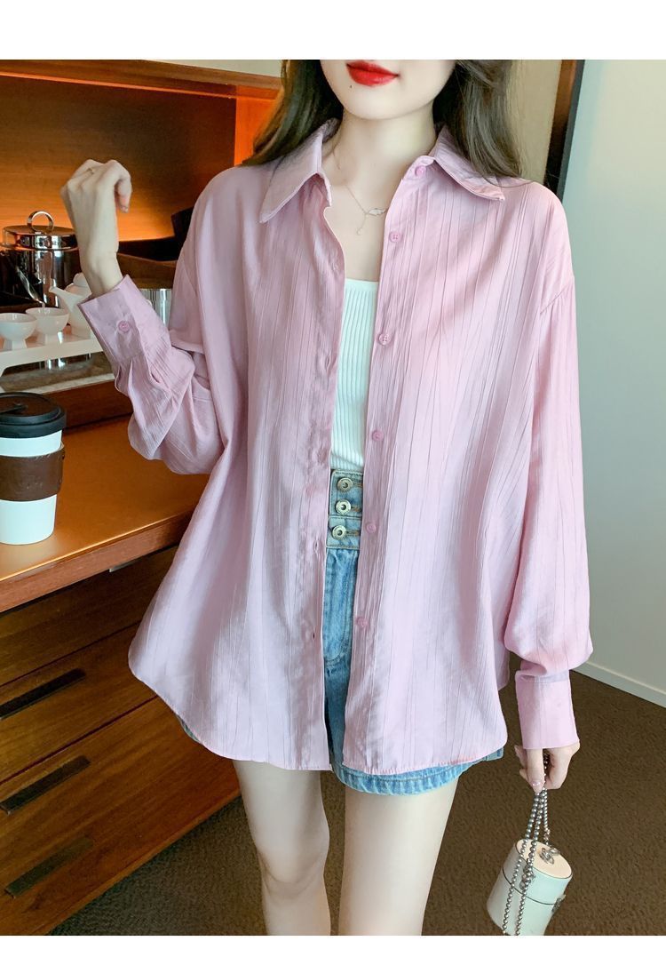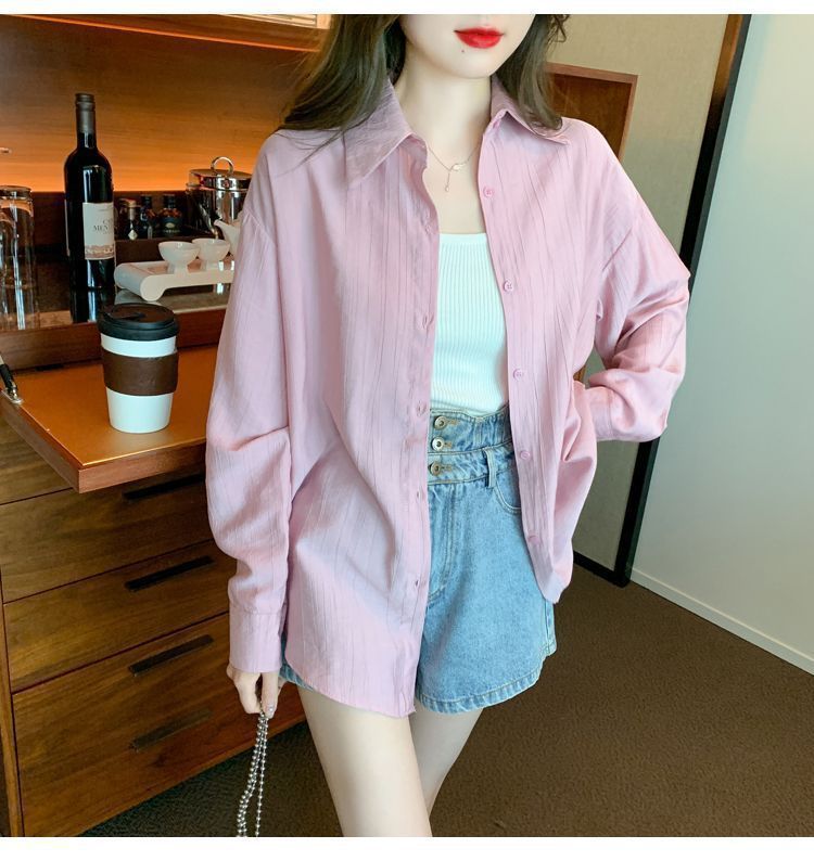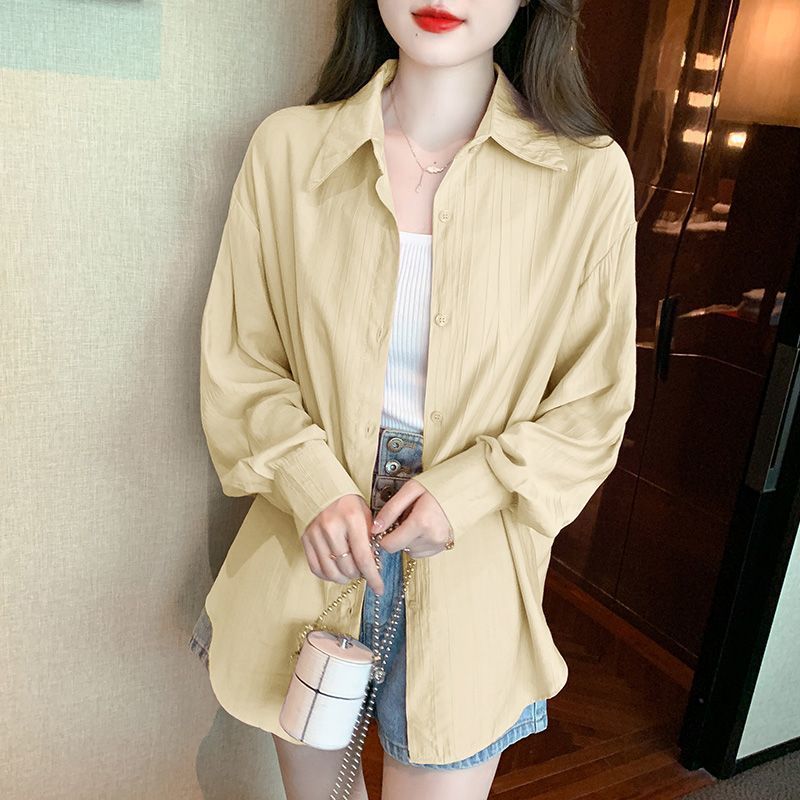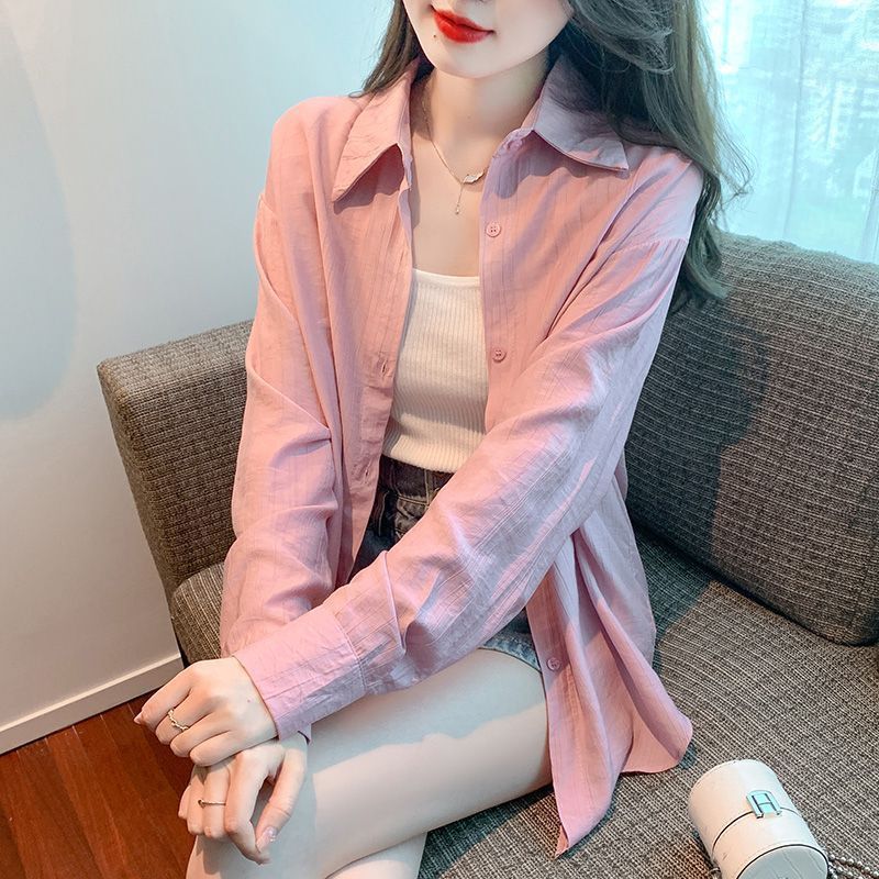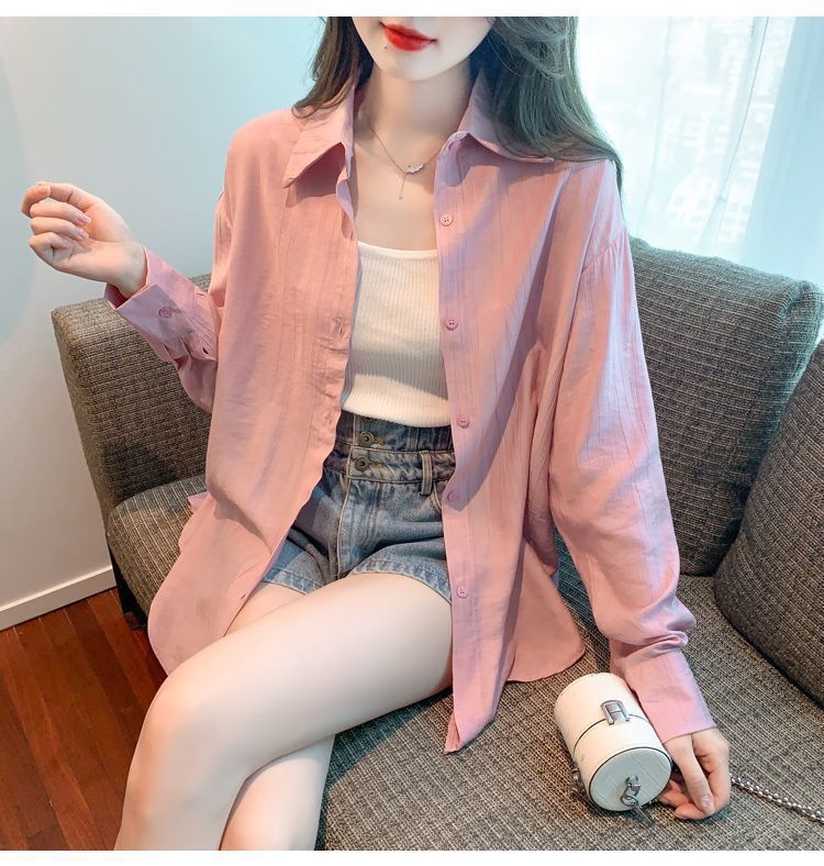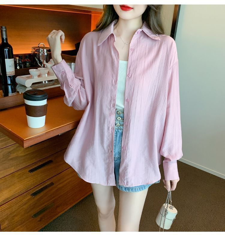 칼라 셔츠 태양 보호 의류 여성의 봄과 여름 2024 여름 새로운 느슨한 긴 소매 태양 보호 의류 카디건 탑