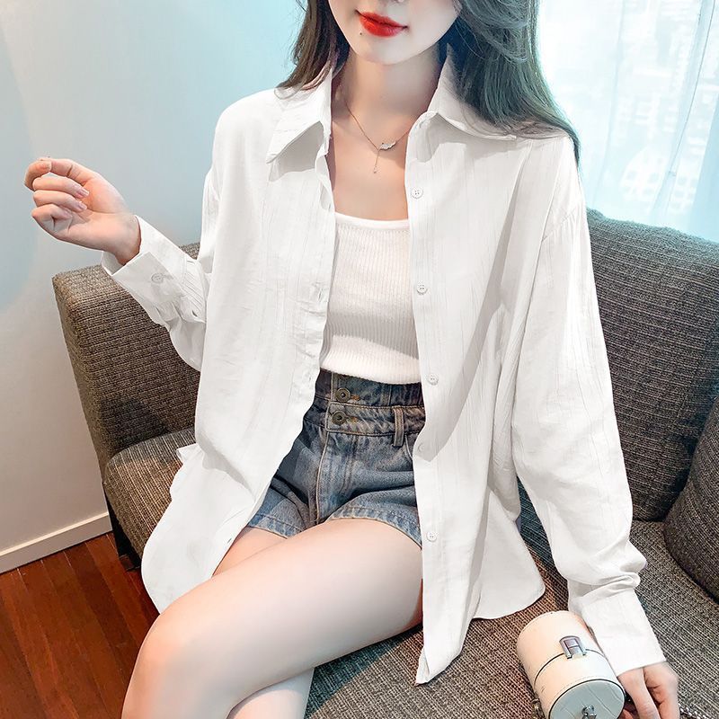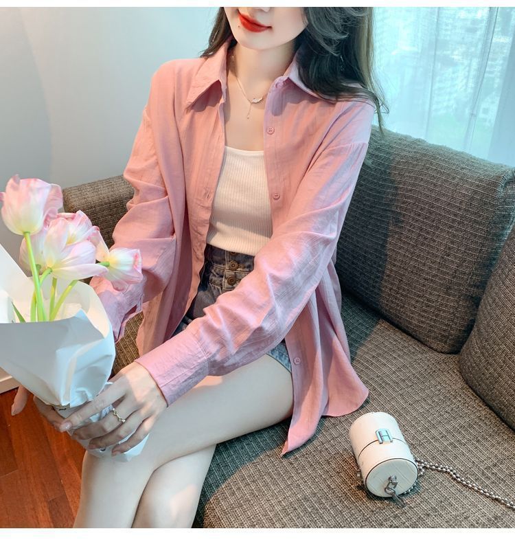 칼라 셔츠 태양 보호 의류 여성의 봄과 여름 2024 여름 새로운 느슨한 긴 소매 태양 보호 의류 카디건 탑스토어 가기