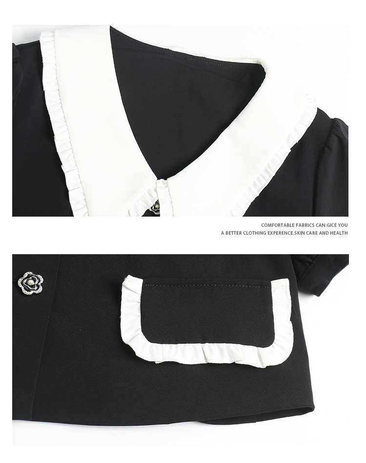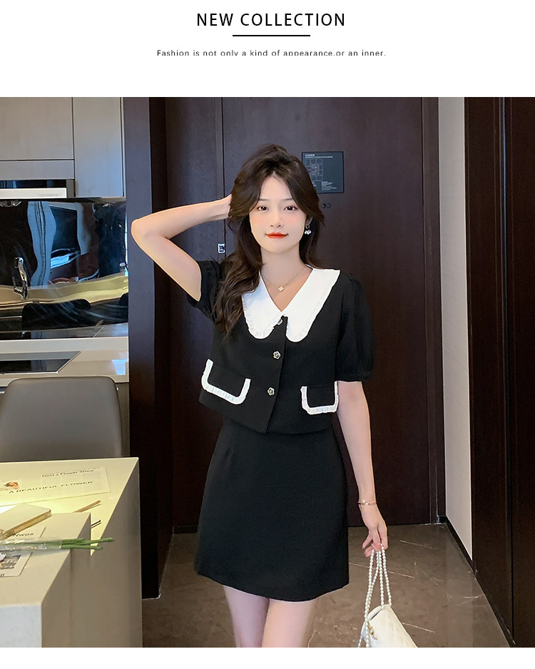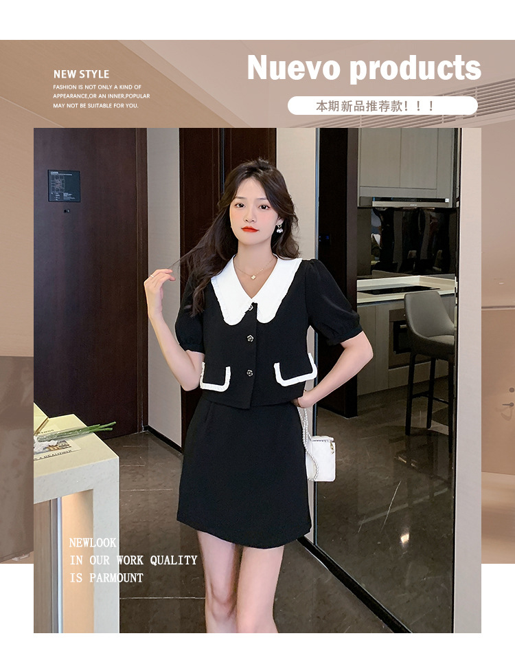 새로운 블랙 통통녀 사교계 스타일 세트 여름 인형 칼라 느슨한 슬림 탑 스커트 투피스 세트