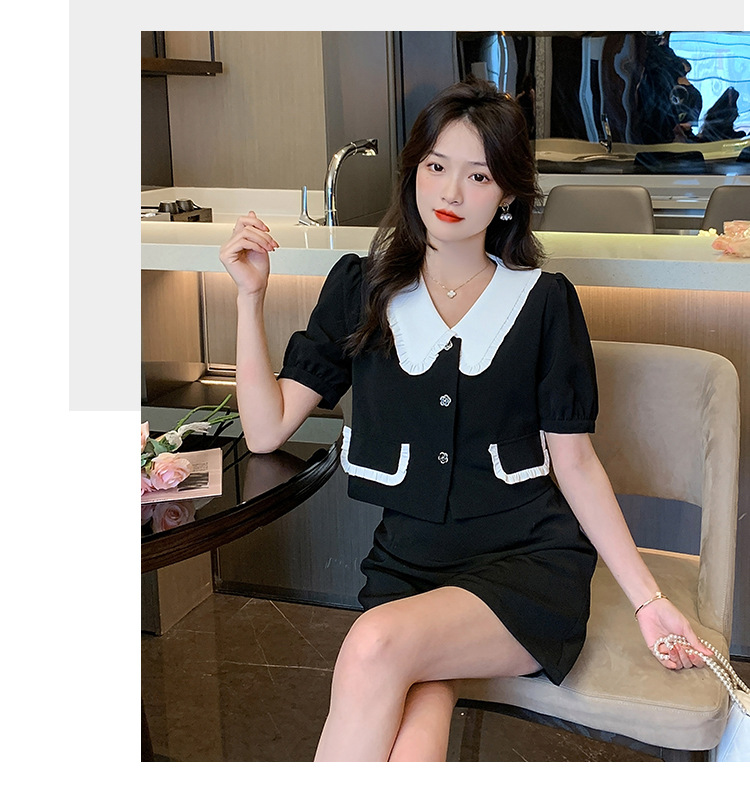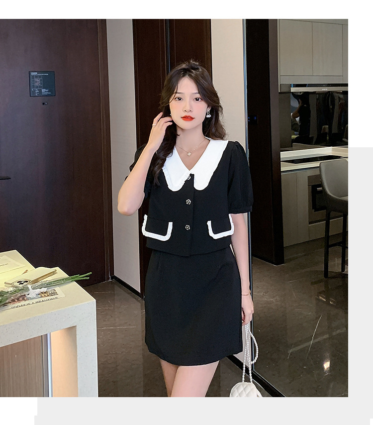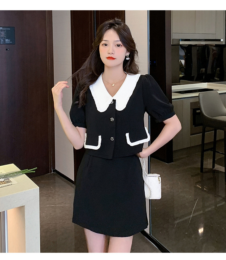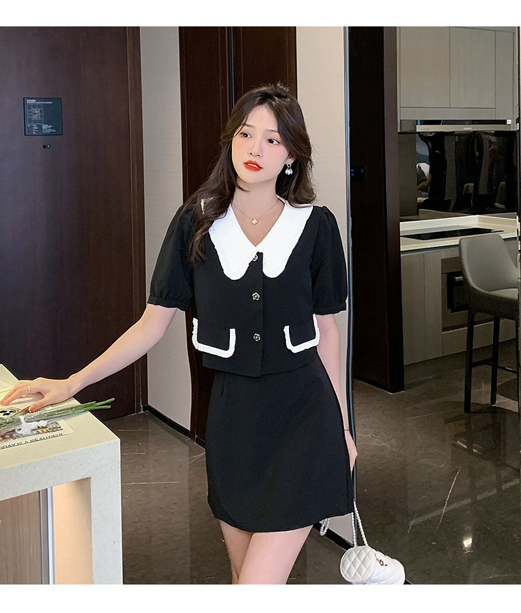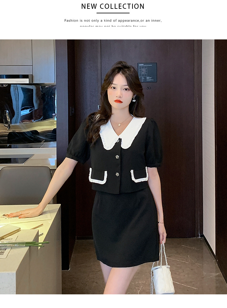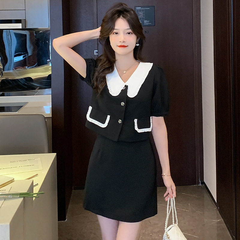 새로운 블랙 통통녀 사교계 스타일 세트 여름 인형 칼라 느슨한 슬림 탑 스커트 투피스 세트스토어 가기