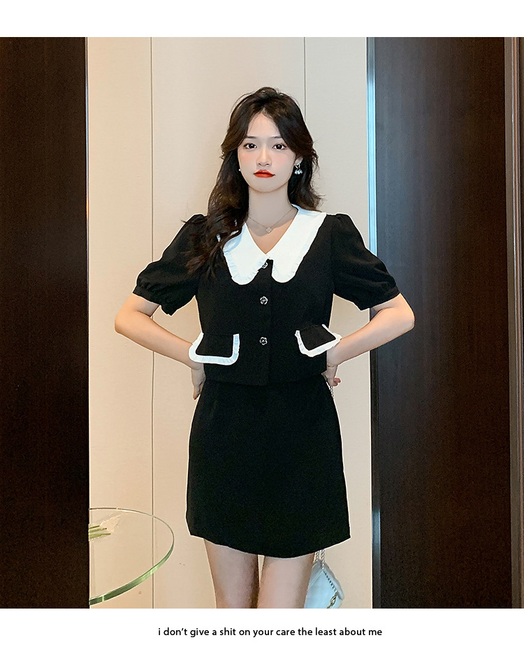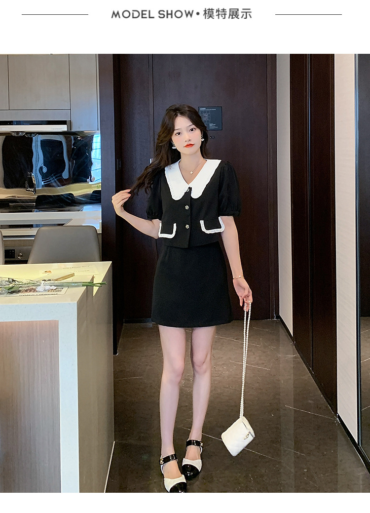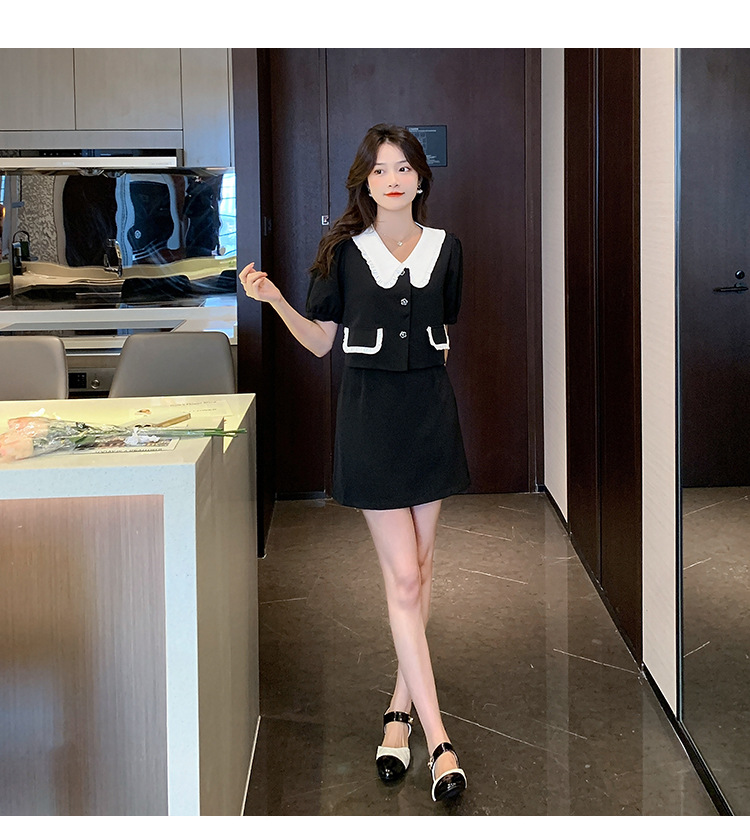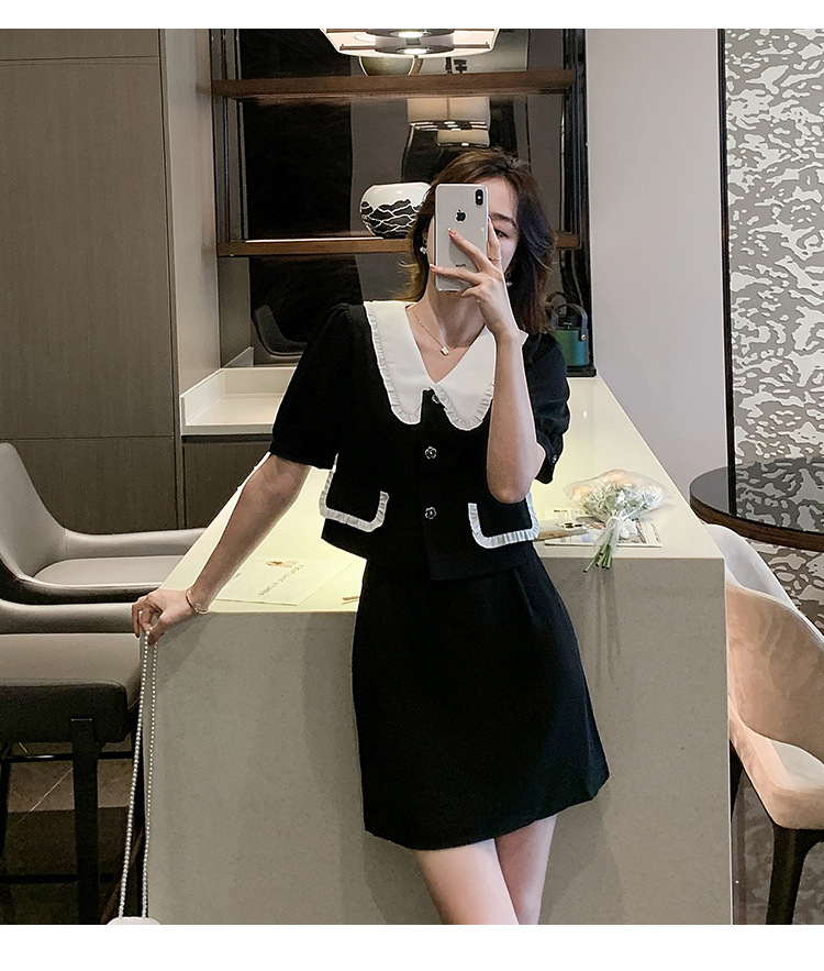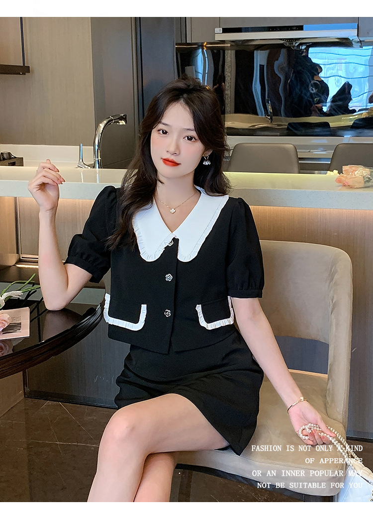 새로운 블랙 통통녀 사교계 스타일 세트 여름 인형 칼라 느슨한 슬림 탑 스커트 투피스 세트스토어 가기