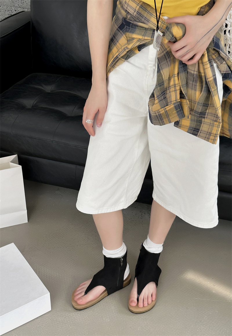 2025 봄과 여름 새로운 한국식 통 샌들 여자 올매치 로우 힐 로마 레트로 쇼트 패셔너블 샌들