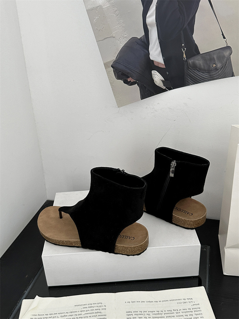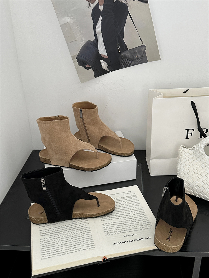 2025 봄과 여름 새로운 한국식 통 샌들 여자 올매치 로우 힐 로마 레트로 쇼트 패셔너블 샌들스토어 가기
