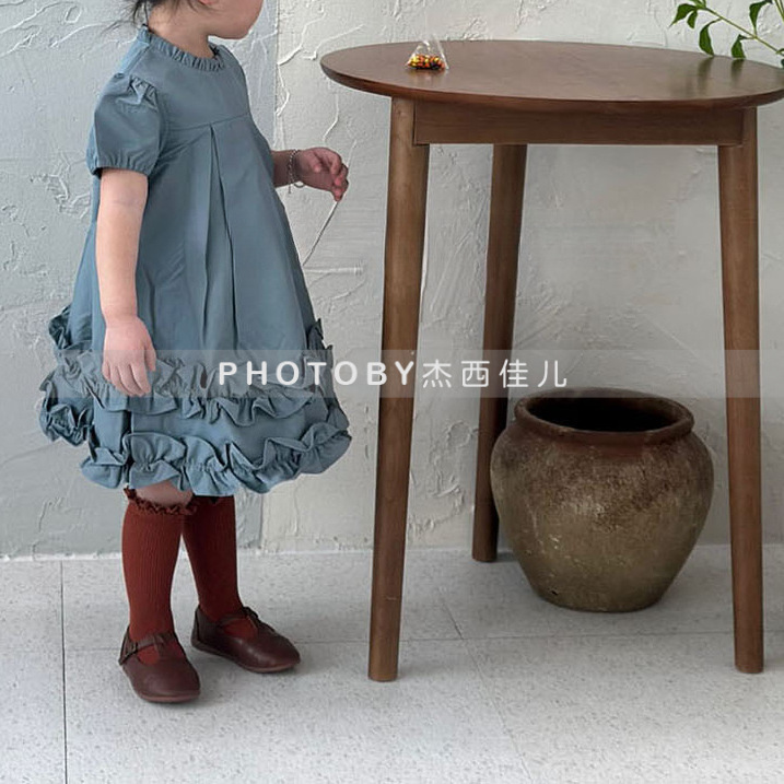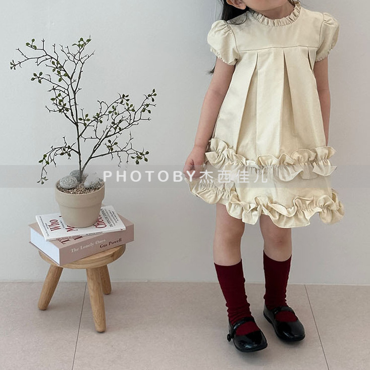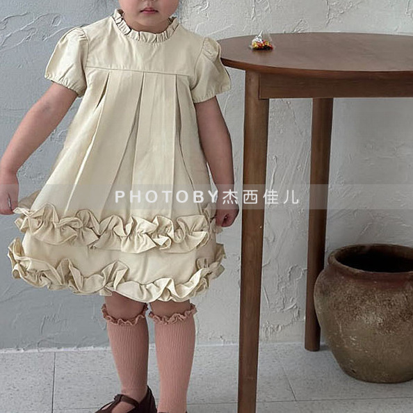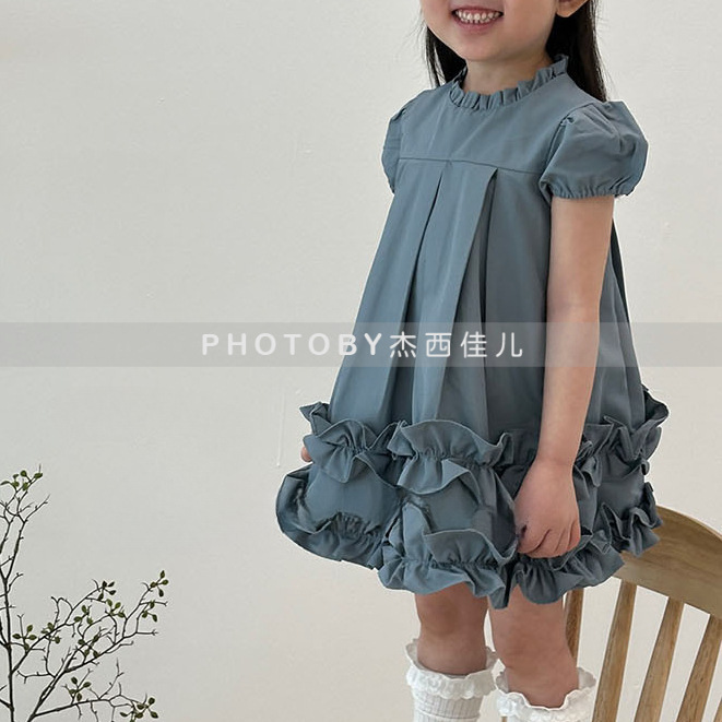 한국 스타일 아동복 여름 새 소녀 달콤한 귀여운 절묘한 러플 짧은 소매 퍼프 소매 원피스스토어 가기