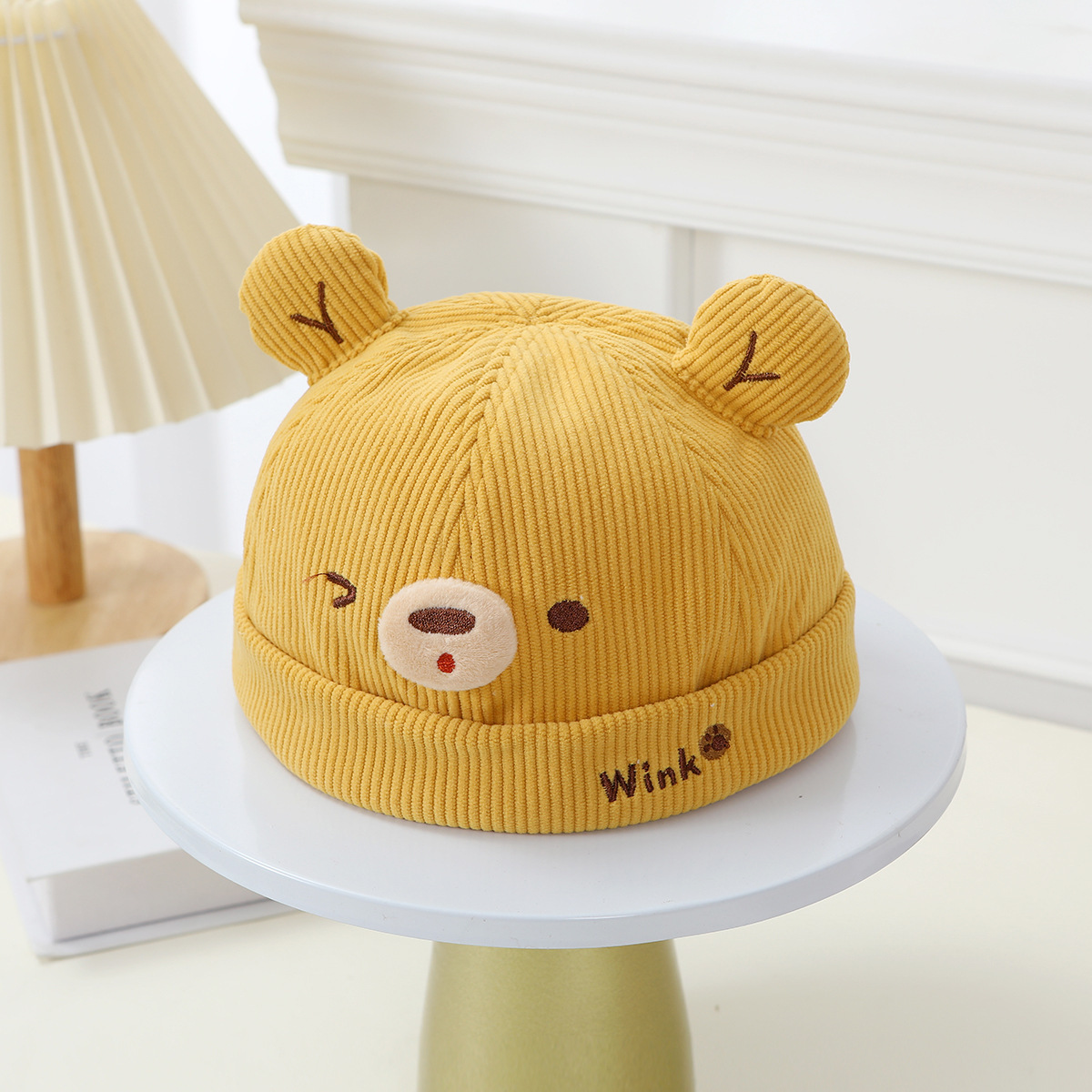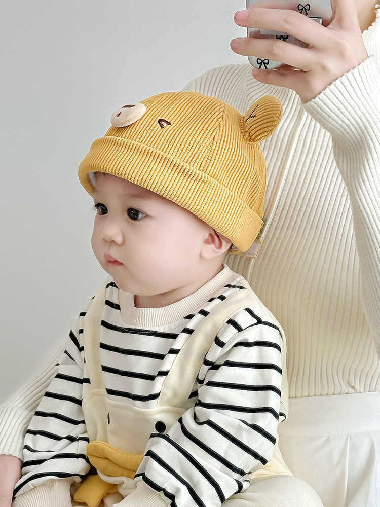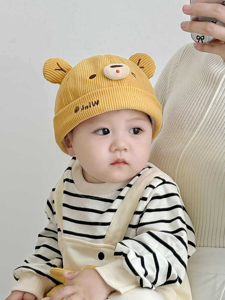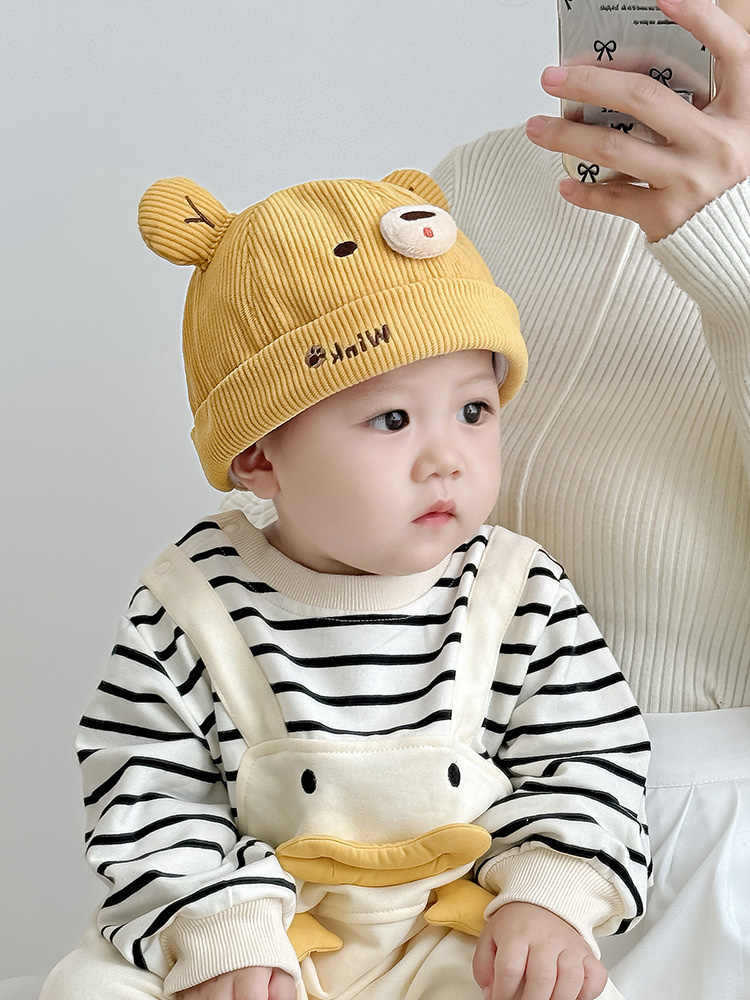 아기 모자 봄과 가을 귀여운 곰 코듀로이 아기 어린이 멜론 모자 가을과 겨울 어린이 아기 바닥 모자