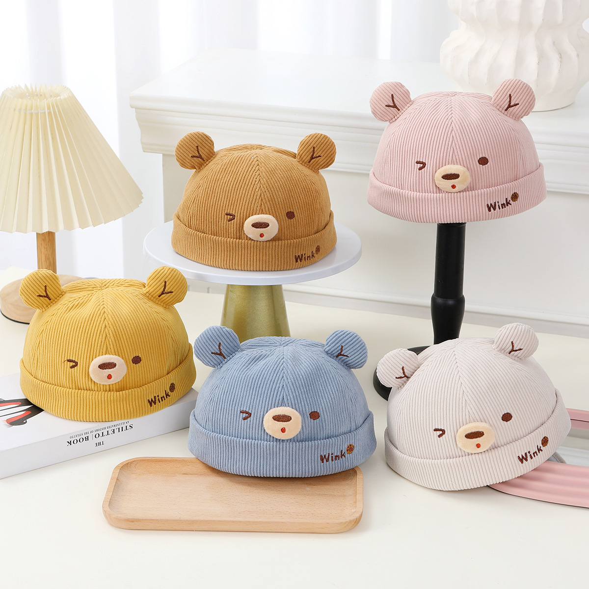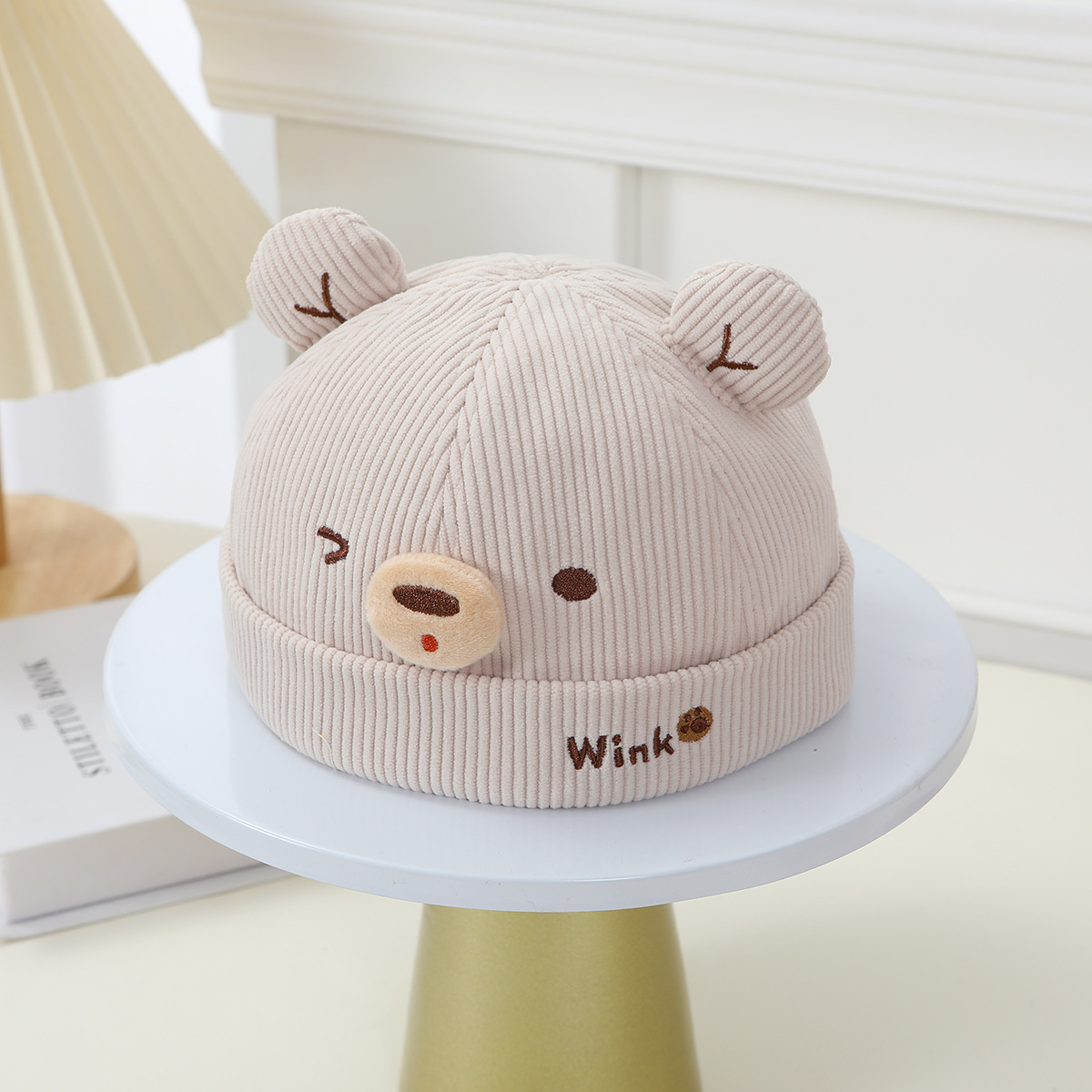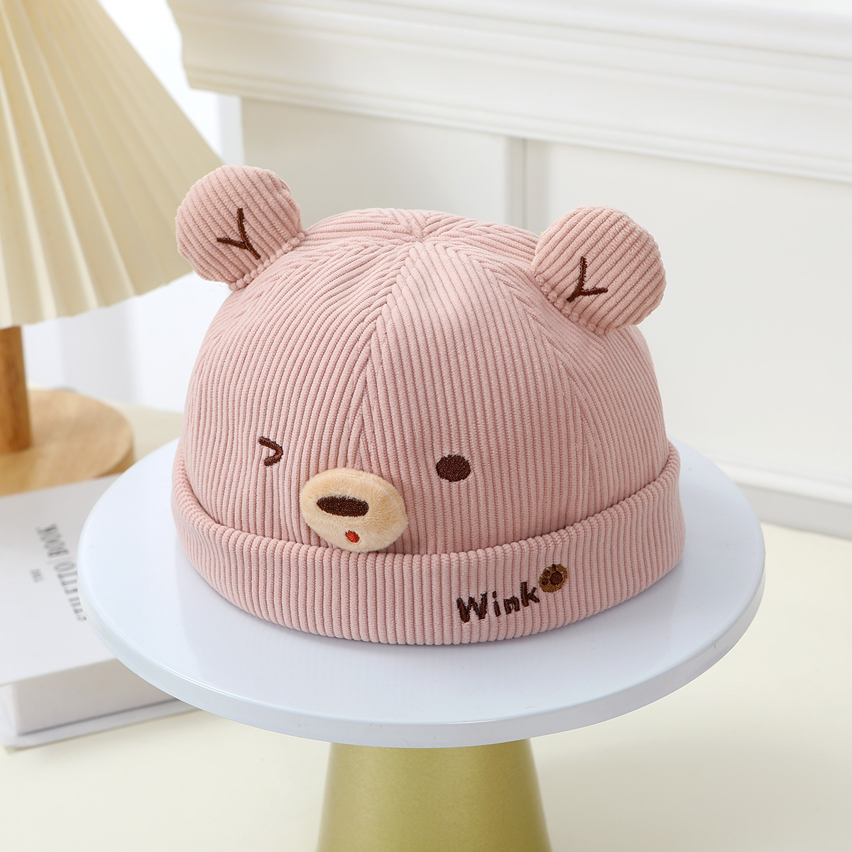 아기 모자 봄과 가을 귀여운 곰 코듀로이 아기 어린이 멜론 모자 가을과 겨울 어린이 아기 바닥 모자