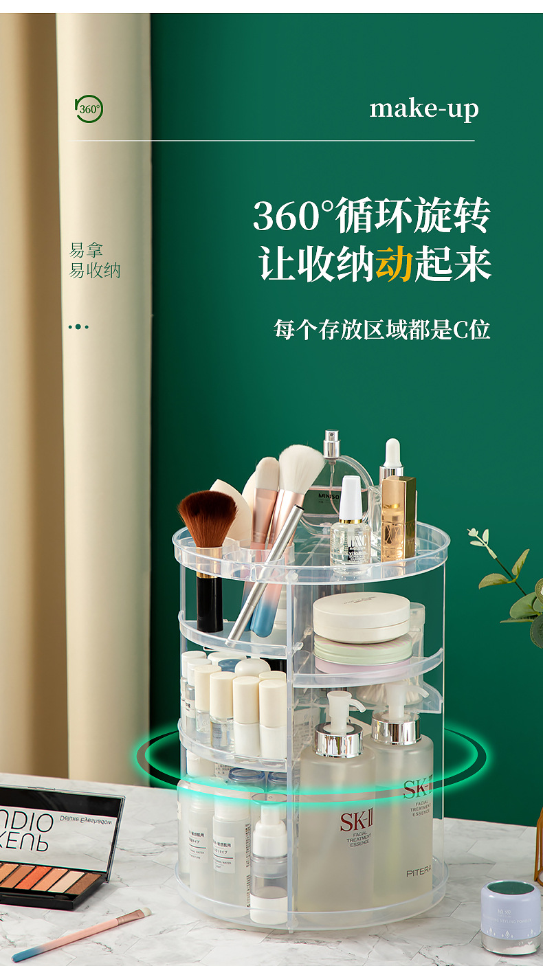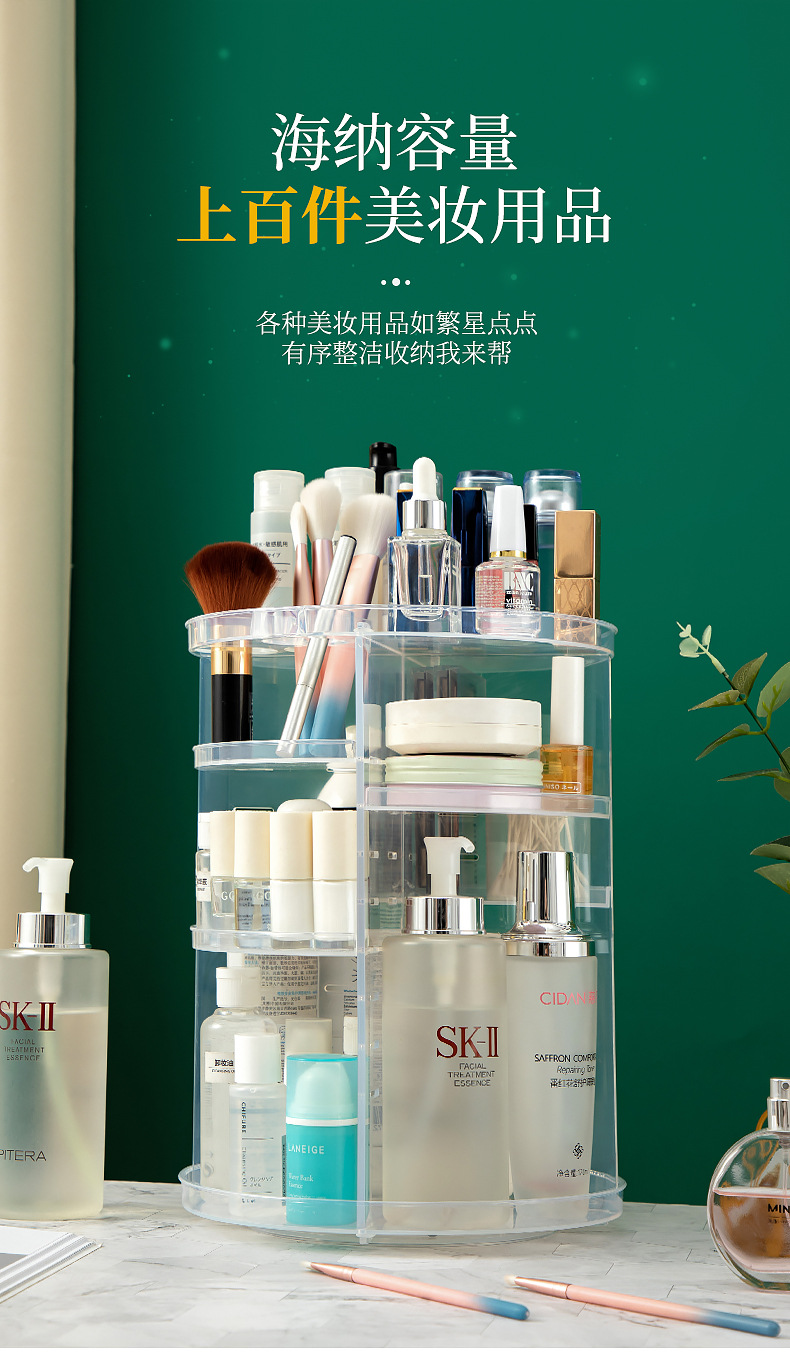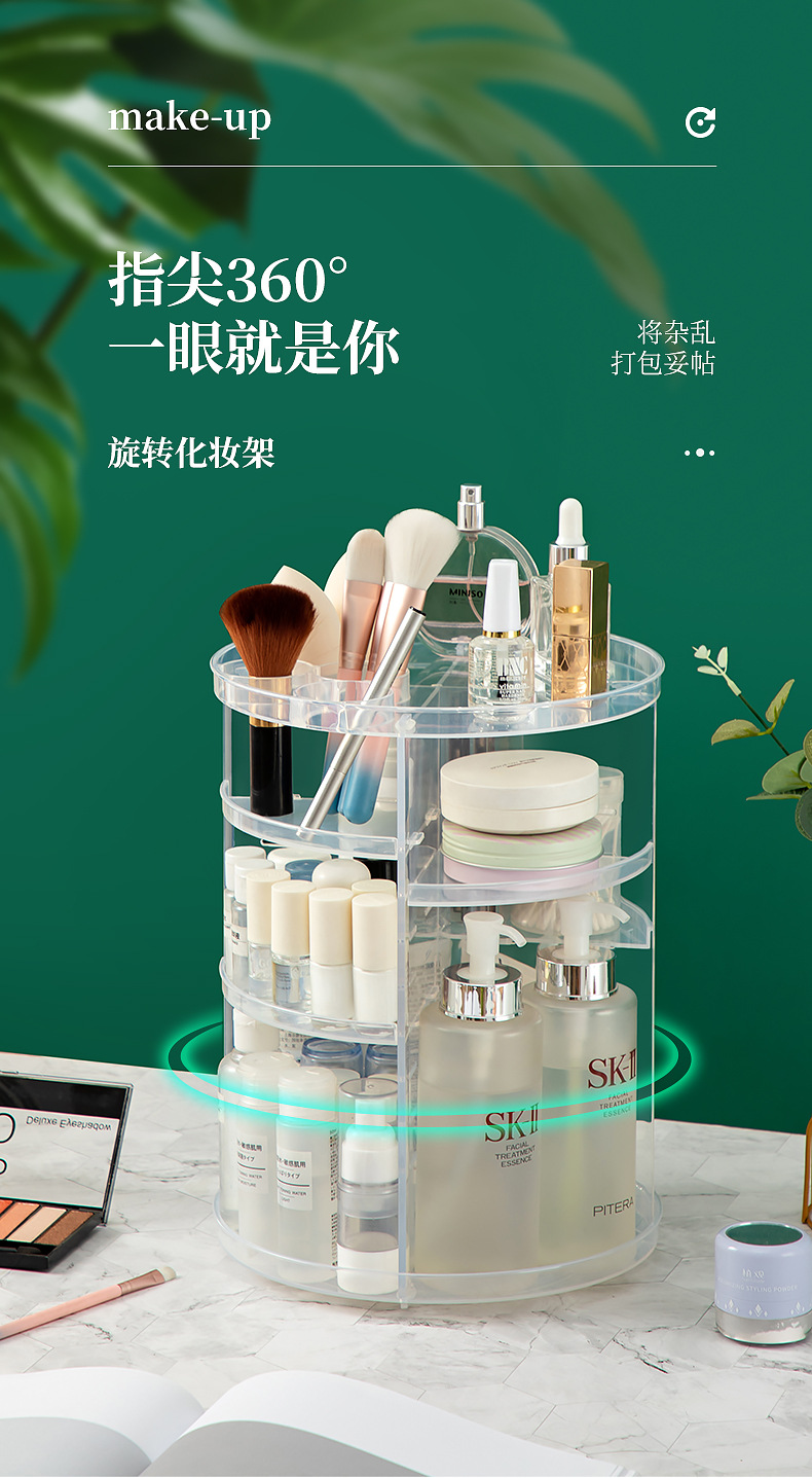 국경 간 핫셀러 Ins 바람 다기능 데스크탑 회전 스토리지 랙 투명 화장품 스토리지 회전 디스크 다층 생산스토어 가기