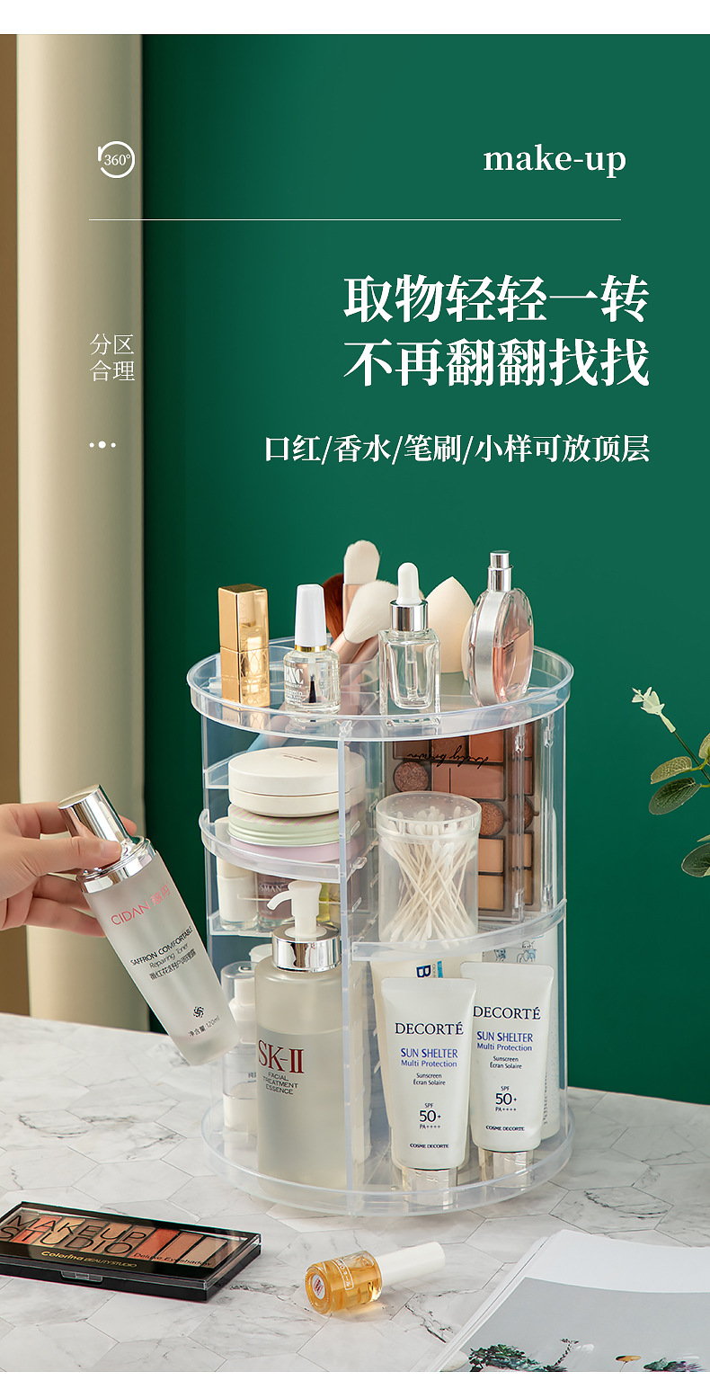 국경 간 핫셀러 Ins 바람 다기능 데스크탑 회전 스토리지 랙 투명 화장품 스토리지 회전 디스크 다층 생산