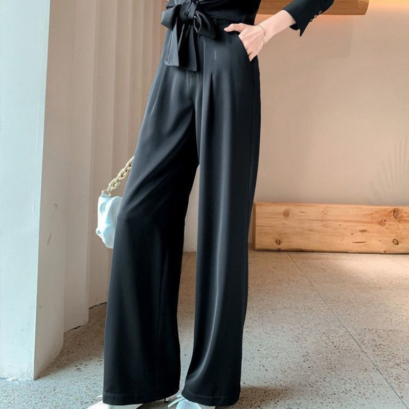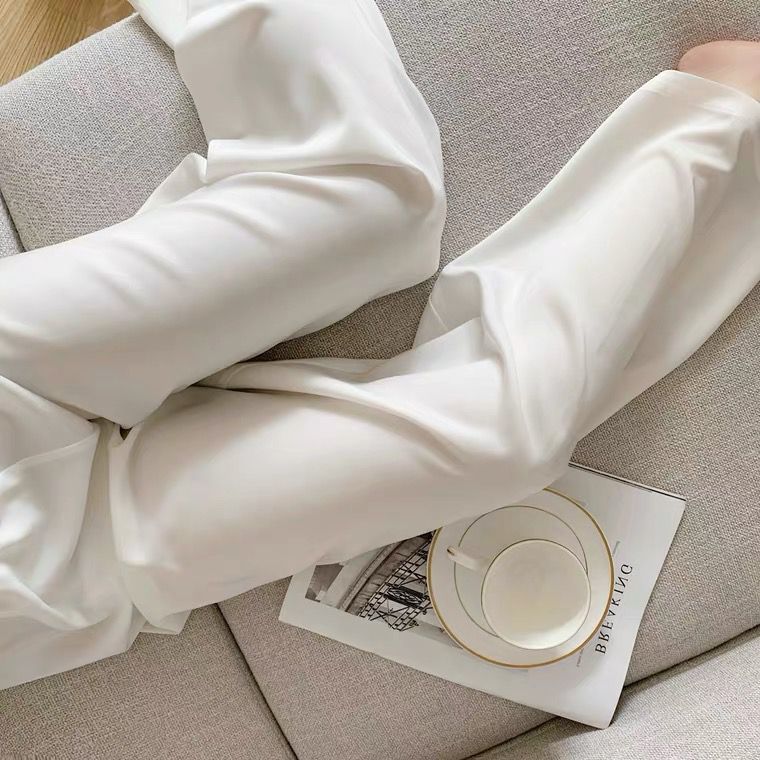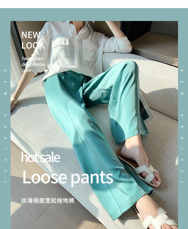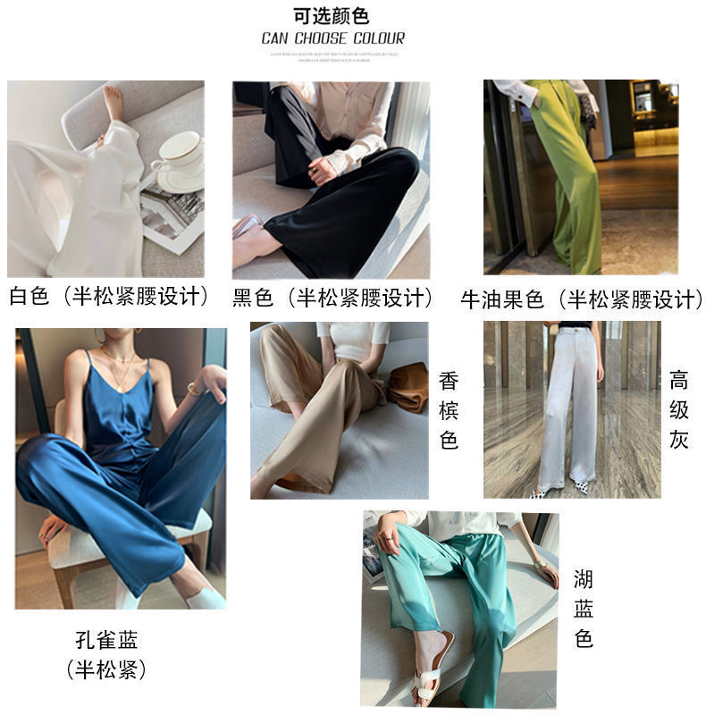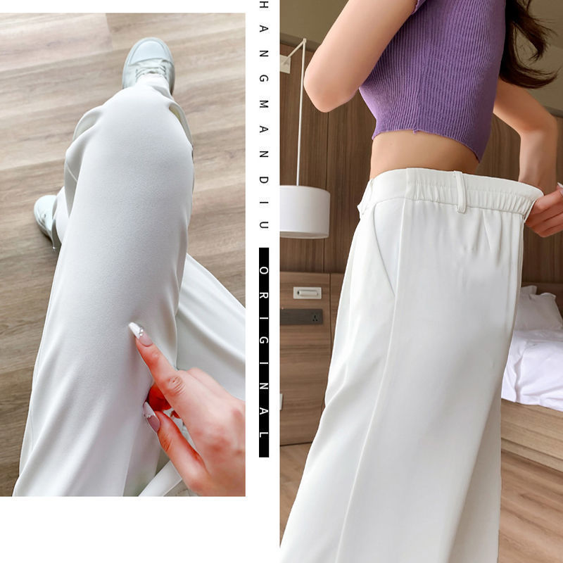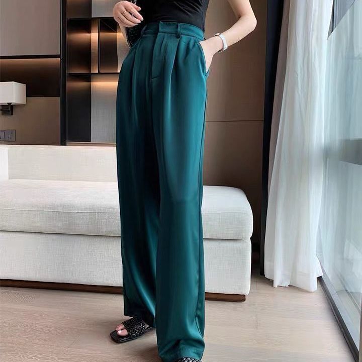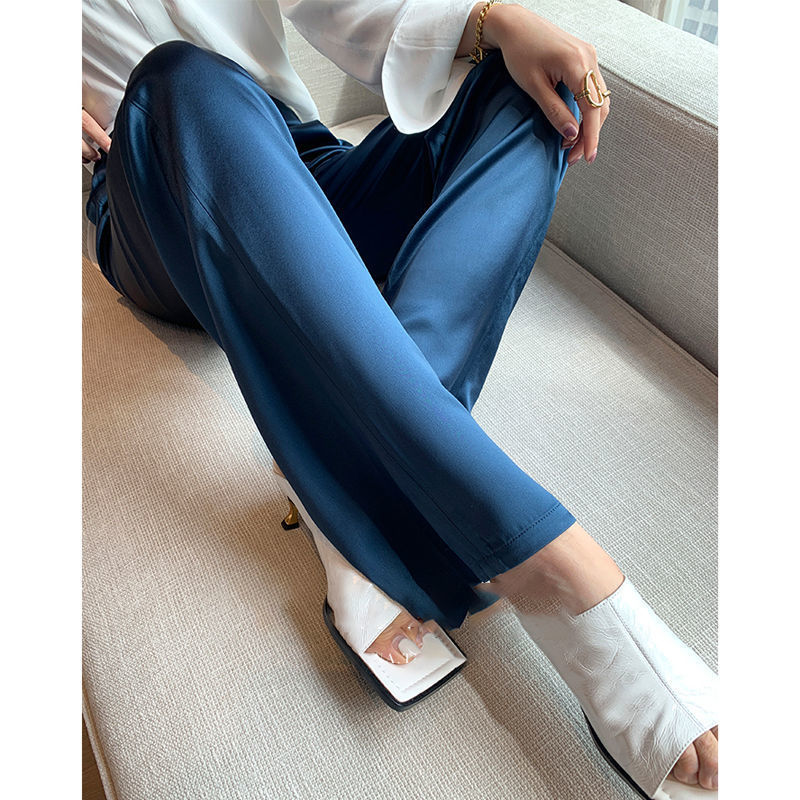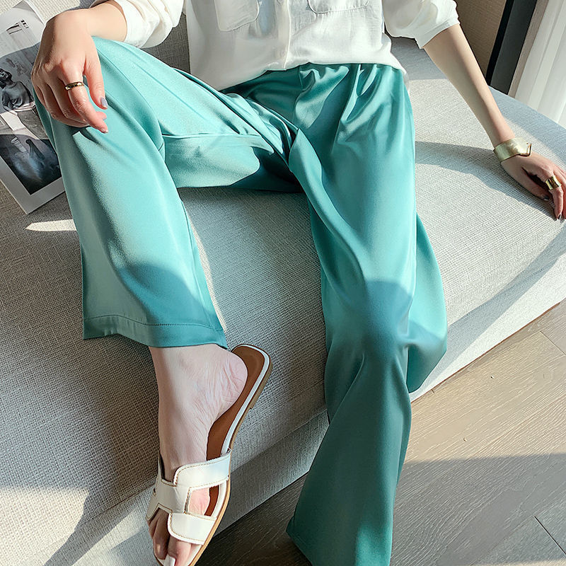 Triacetate Satin 높은 허리 실크 넓은 다리 바지 여성 바지 드롭 센스 여름 여성 바지 스트레이트 바지 한국 스타일 느슨한 슬리밍스토어 가기