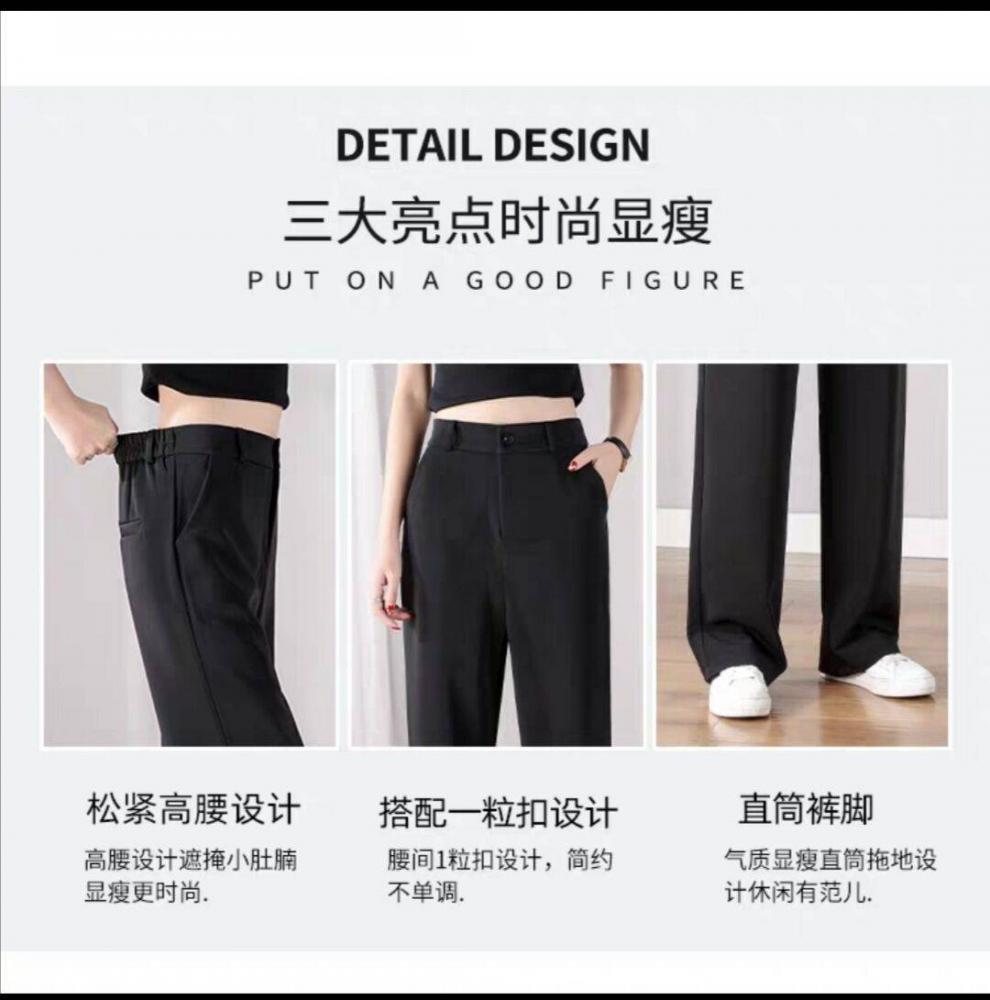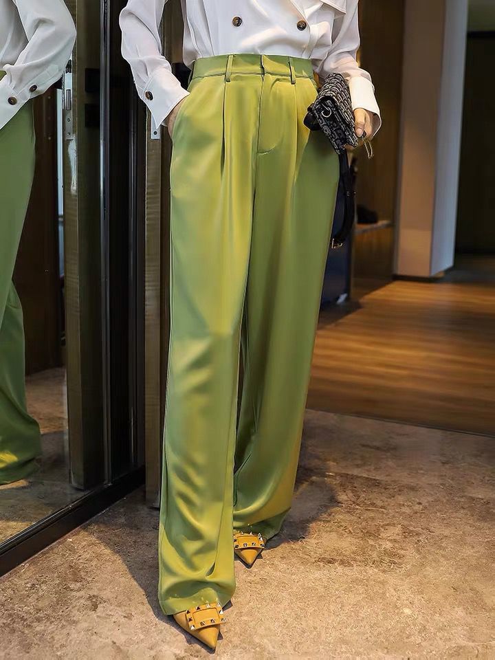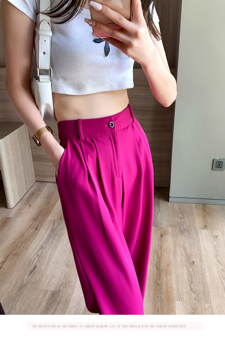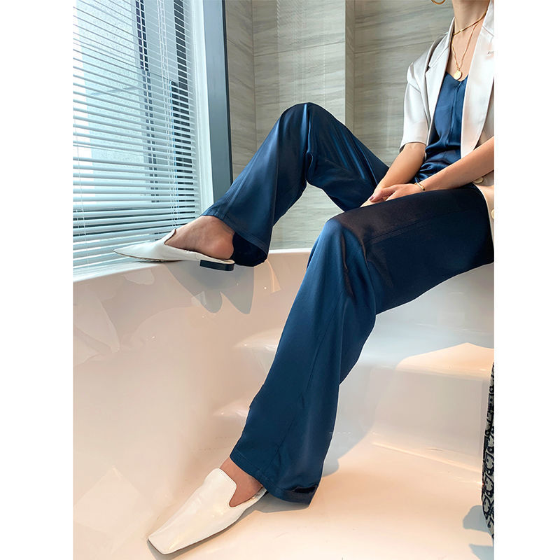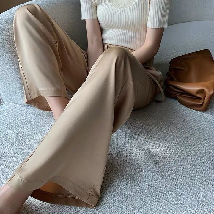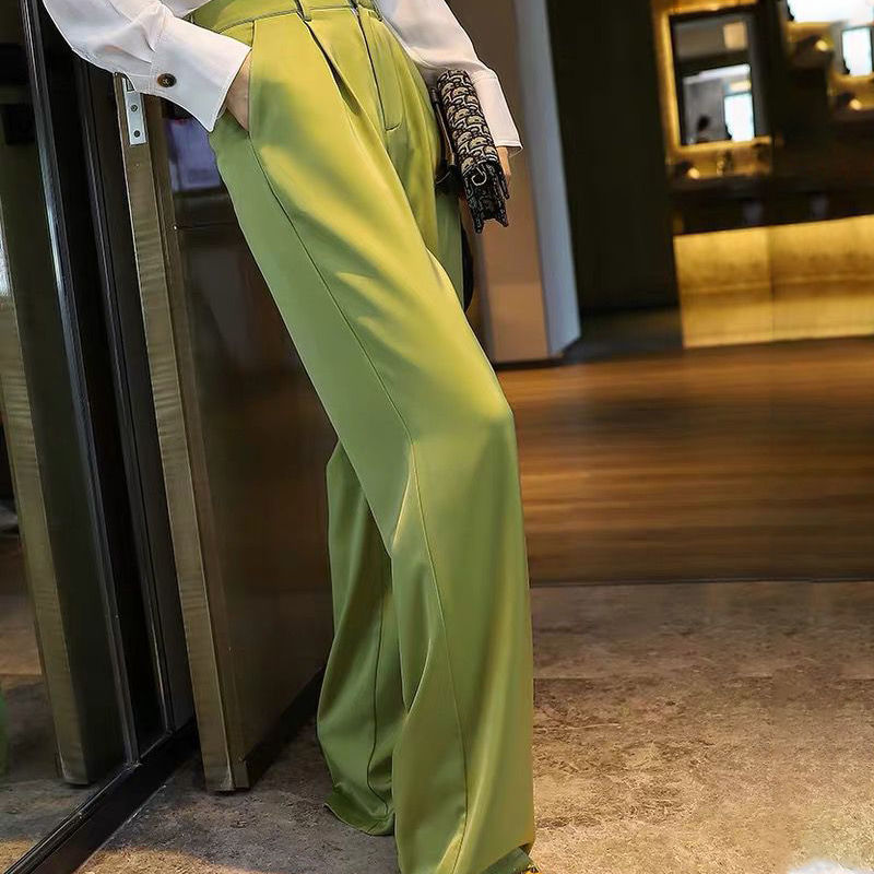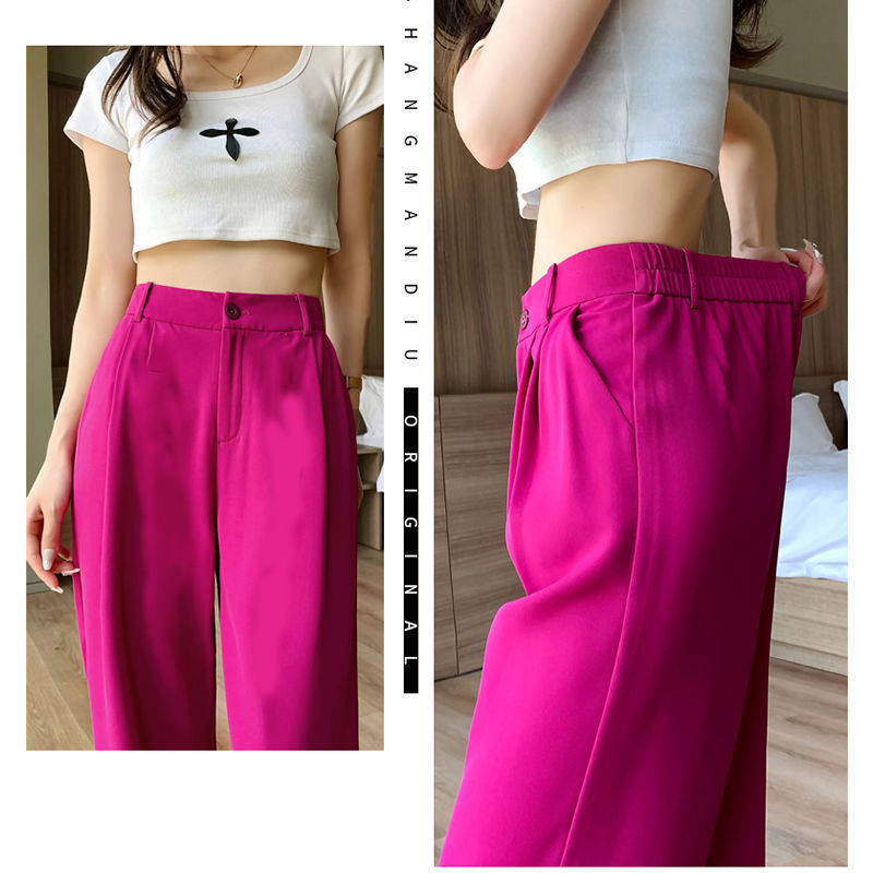 Triacetate Satin 높은 허리 실크 넓은 다리 바지 여성 바지 드롭 센스 여름 여성 바지 스트레이트 바지 한국 스타일 느슨한 슬리밍스토어 가기