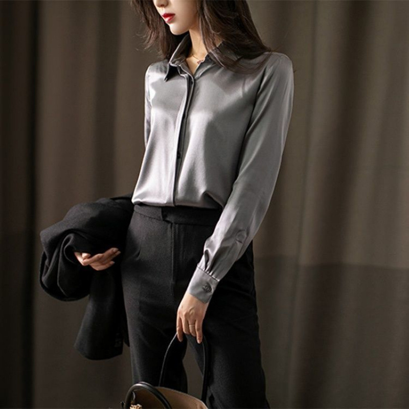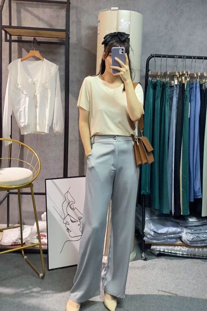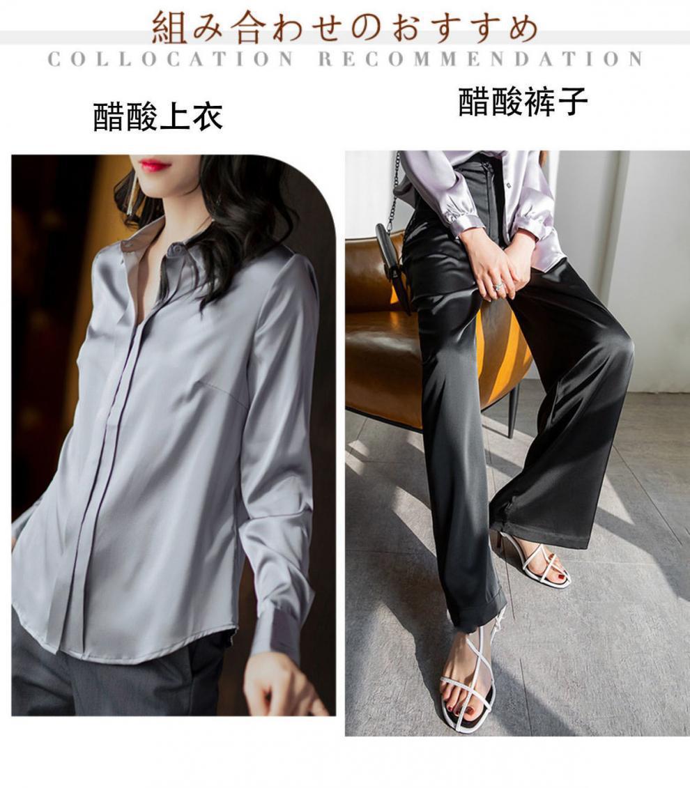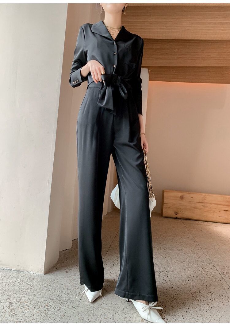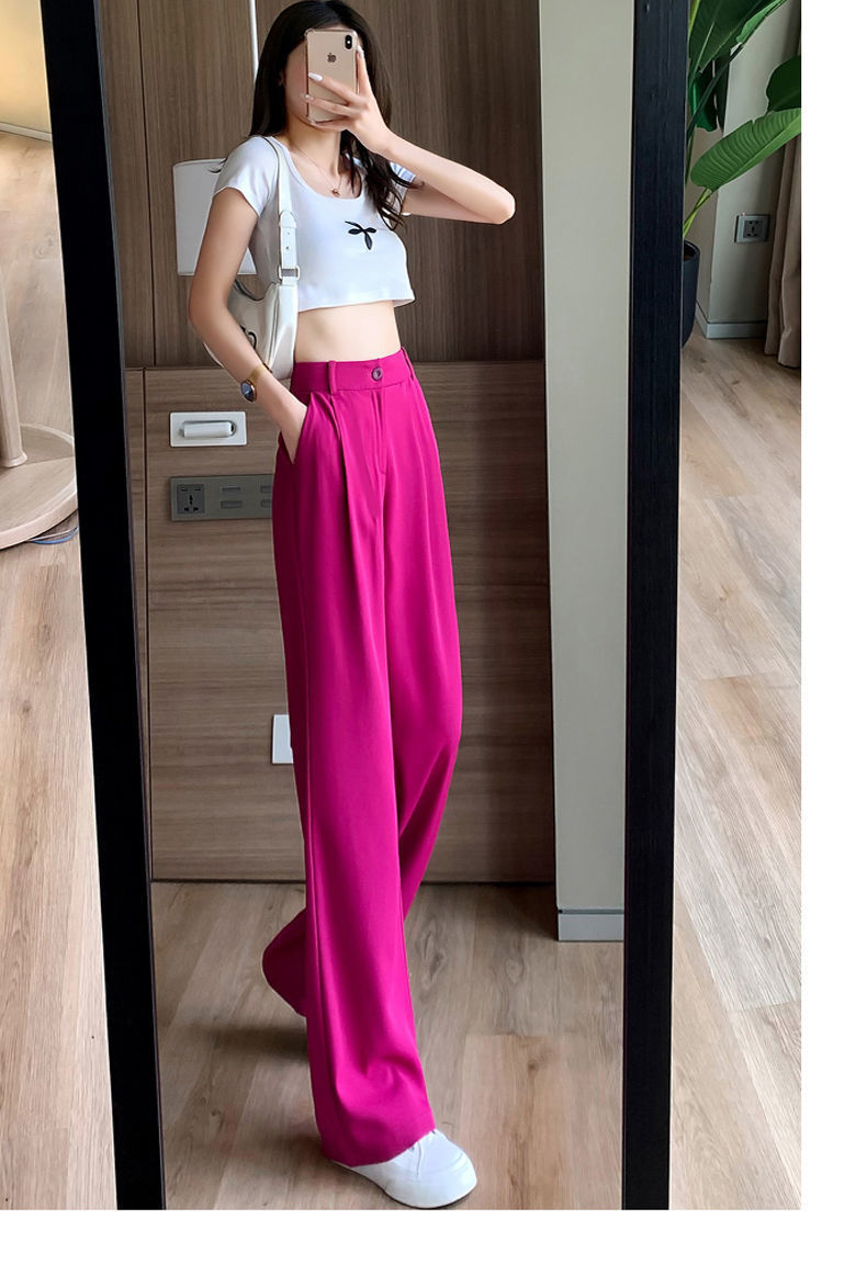 Triacetate Satin 높은 허리 실크 넓은 다리 바지 여성 바지 드롭 센스 여름 여성 바지 스트레이트 바지 한국 스타일 느슨한 슬리밍스토어 가기