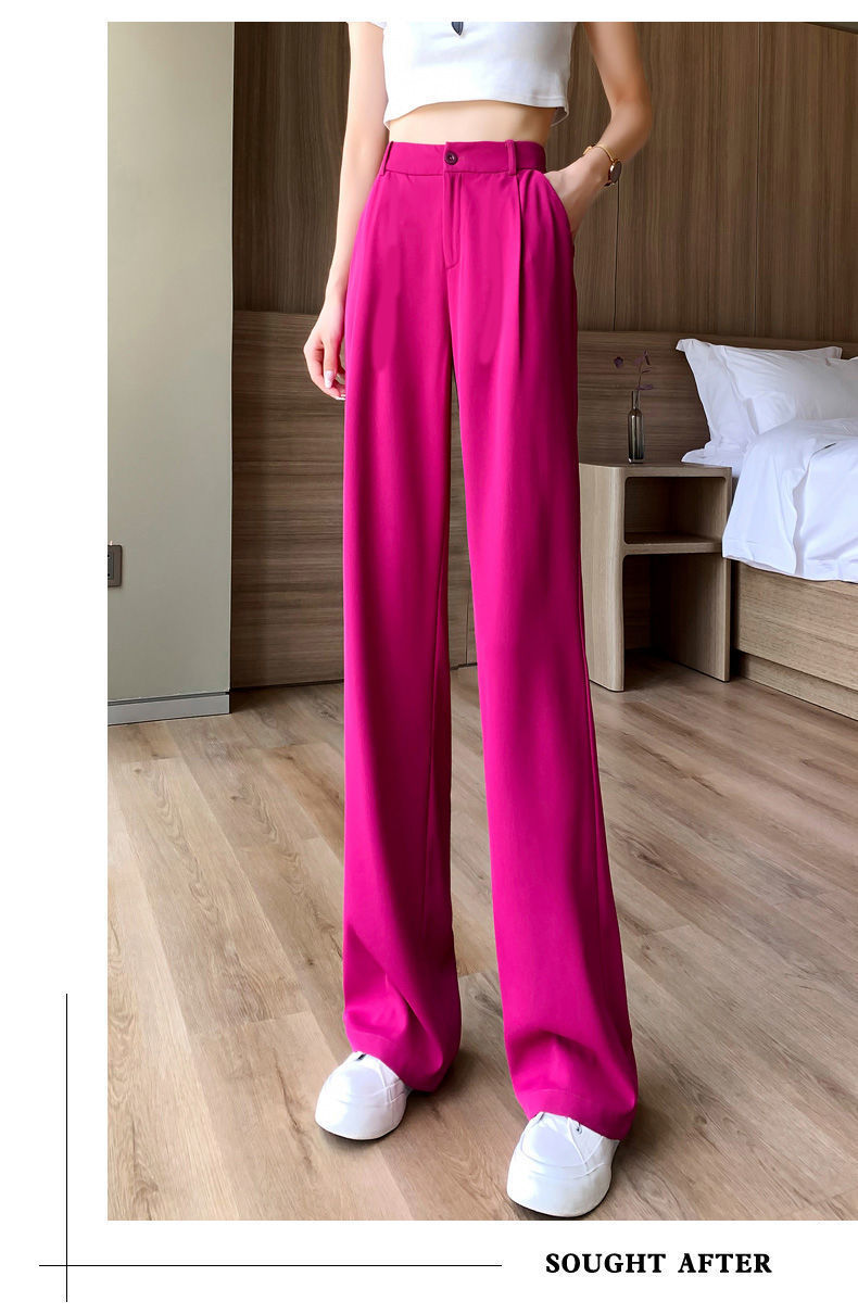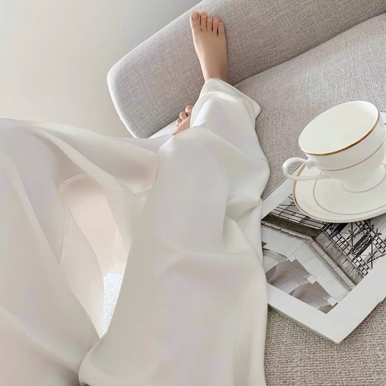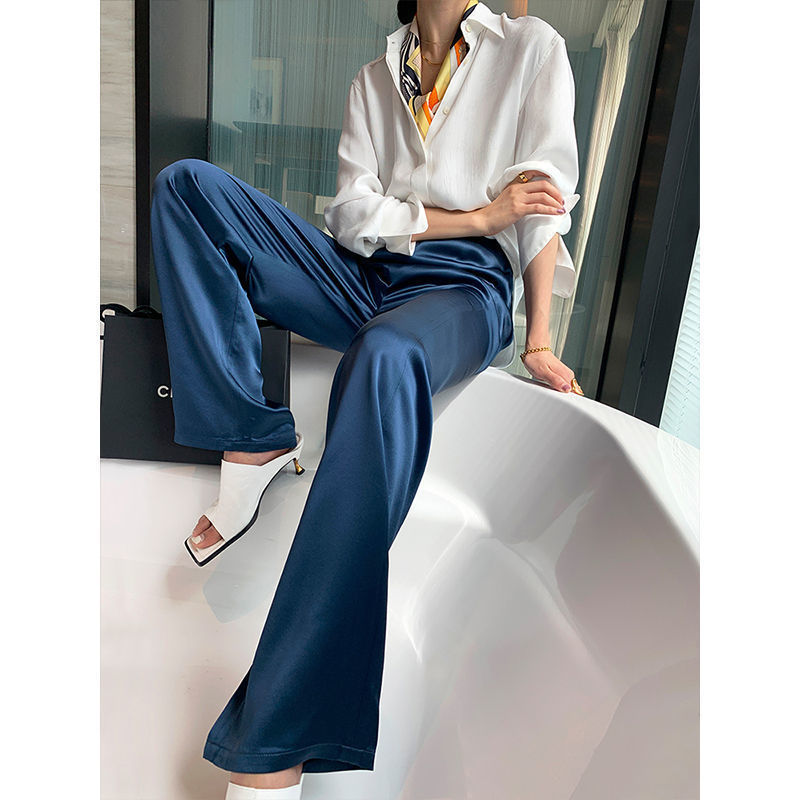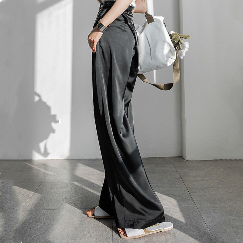 Triacetate Satin 높은 허리 실크 넓은 다리 바지 여성 바지 드롭 센스 여름 여성 바지 스트레이트 바지 한국 스타일 느슨한 슬리밍