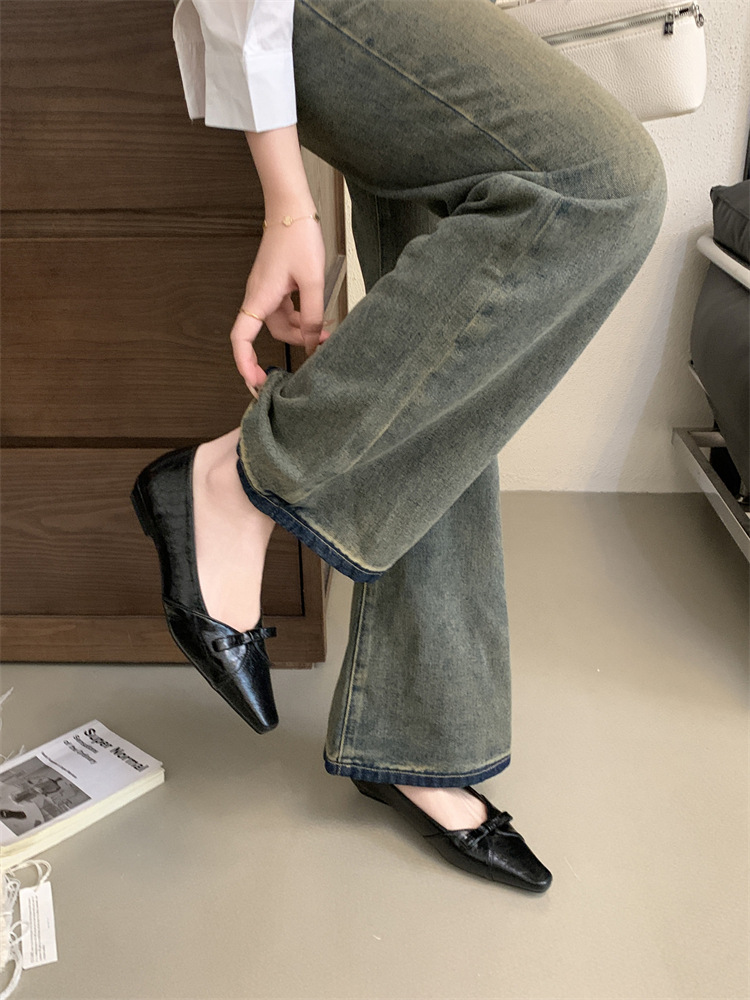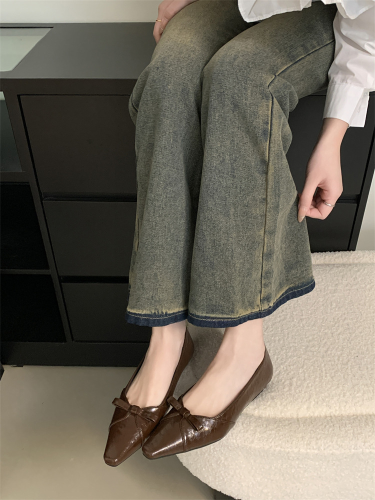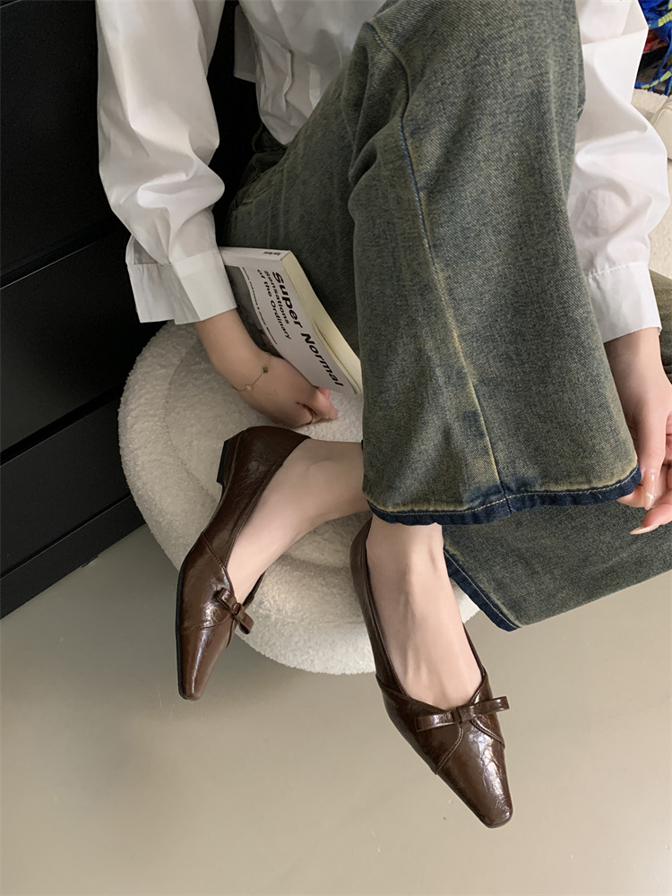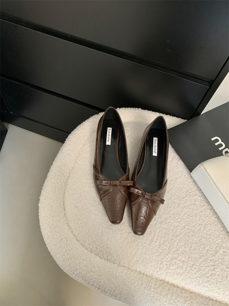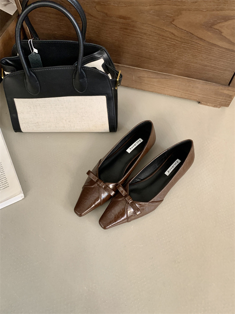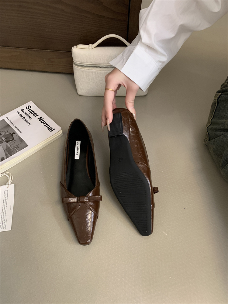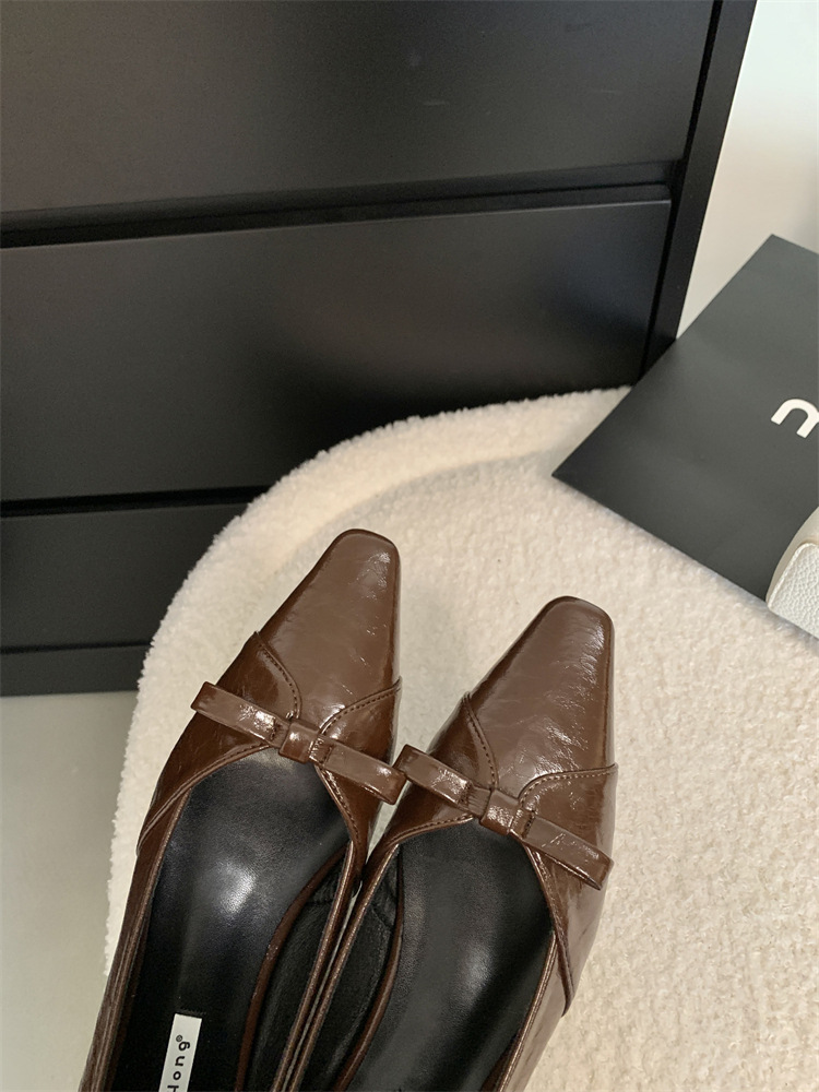 프랑스 스타일의 우아한 쐐기 다크 브라운 싱글 신발 여성 신발 2025 봄 원피스 부드러운 통근 틈새 저녁 무당 신발스토어 가기