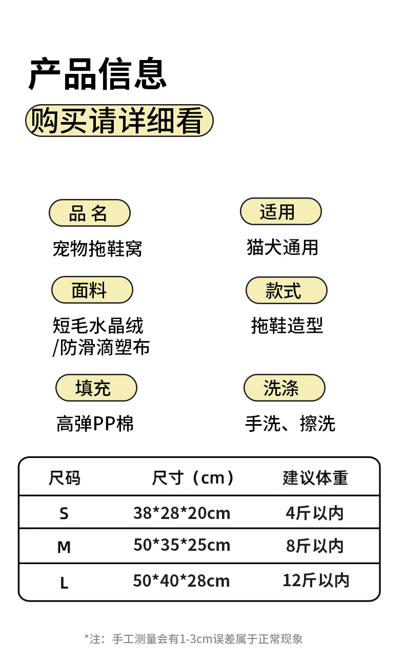 • 삼색 주황색 슬리퍼 둥지 38*28*20CM 2kg 내부 애완동물