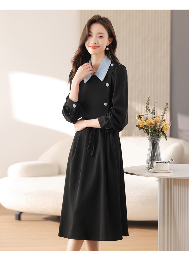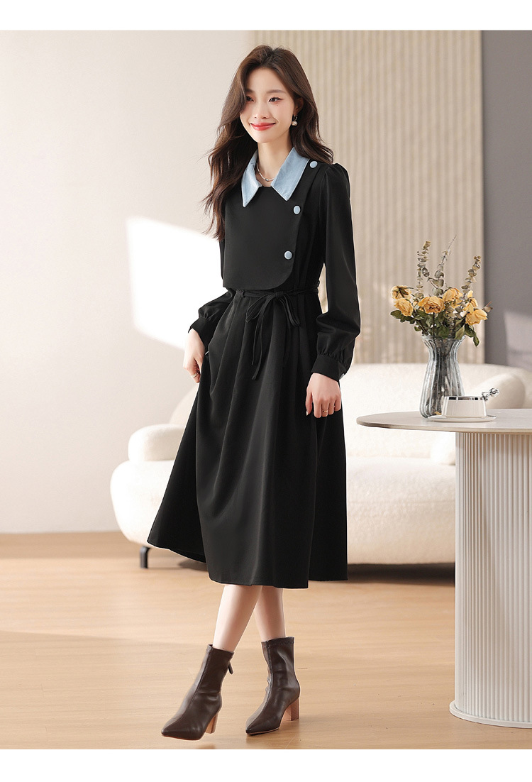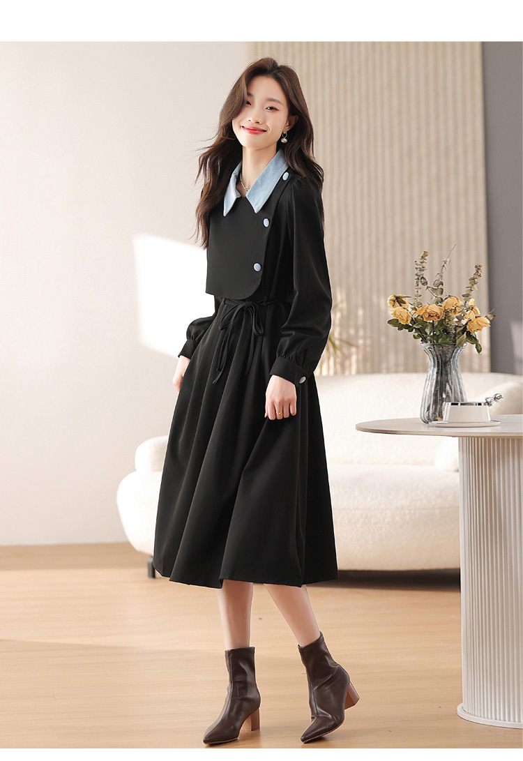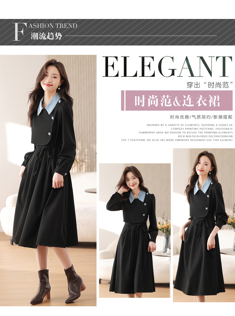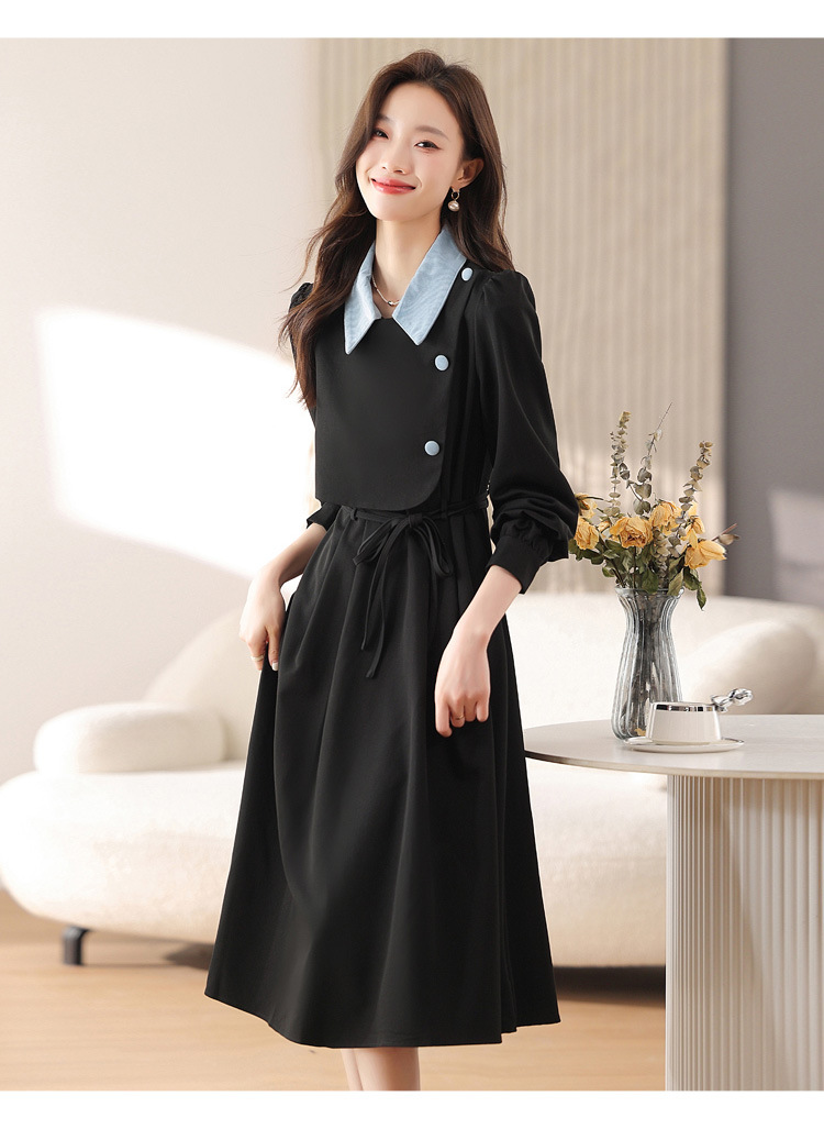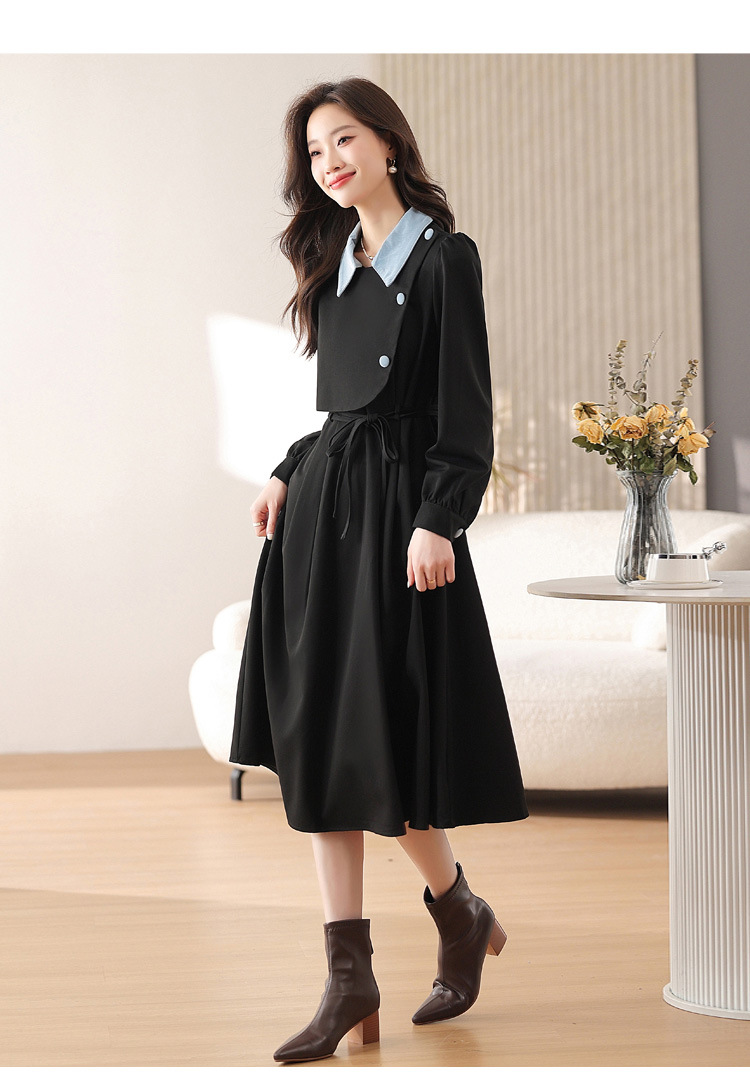 2024 가을 새로운 푸른 밤 여행자 프랑스 가짜 두 조각 봄 원피스 여성의 겨울 치마