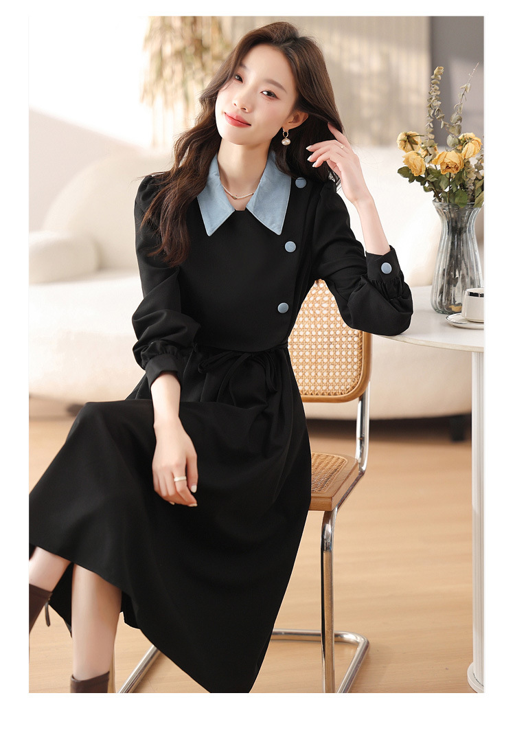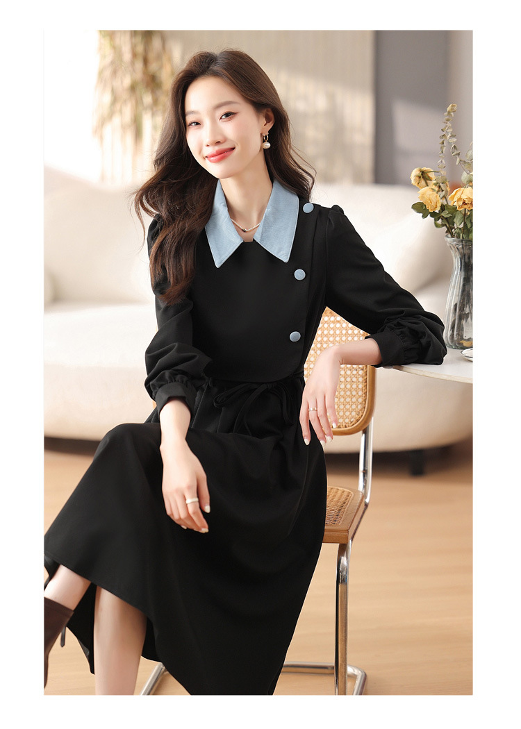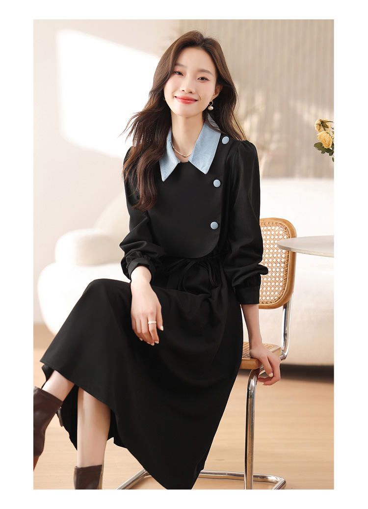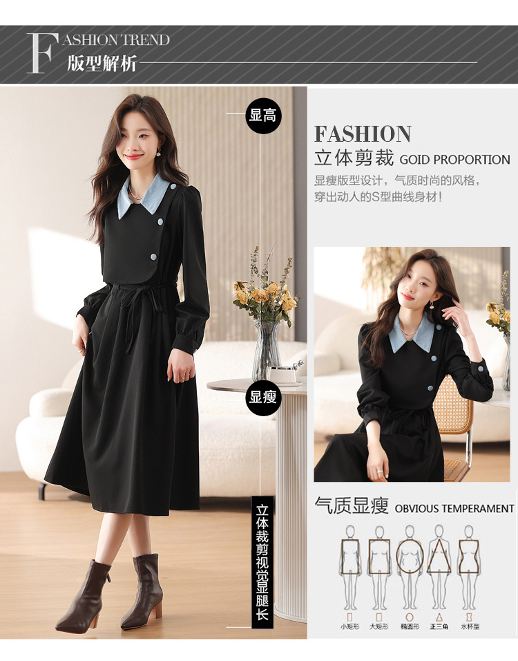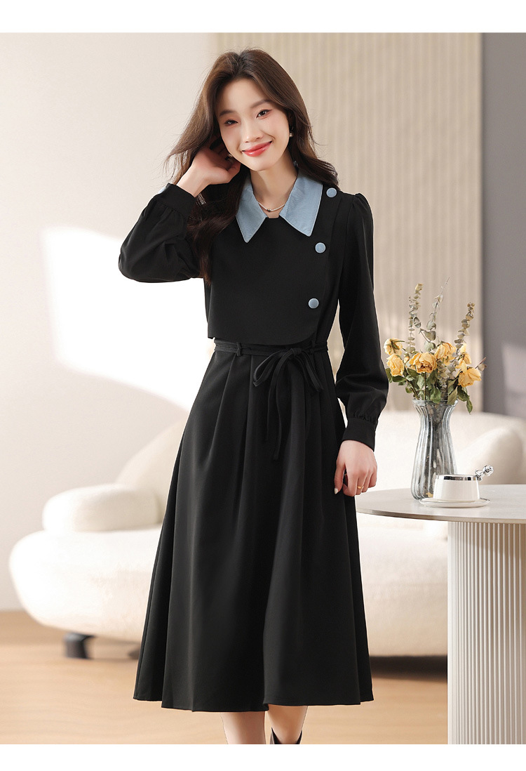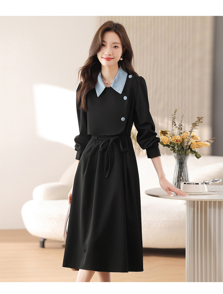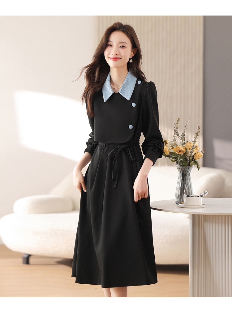 2024 가을 새로운 푸른 밤 여행자 프랑스 가짜 두 조각 봄 원피스 여성의 겨울 치마
