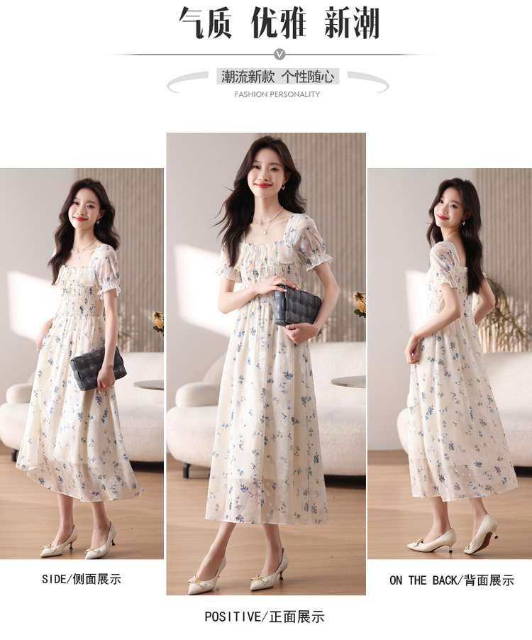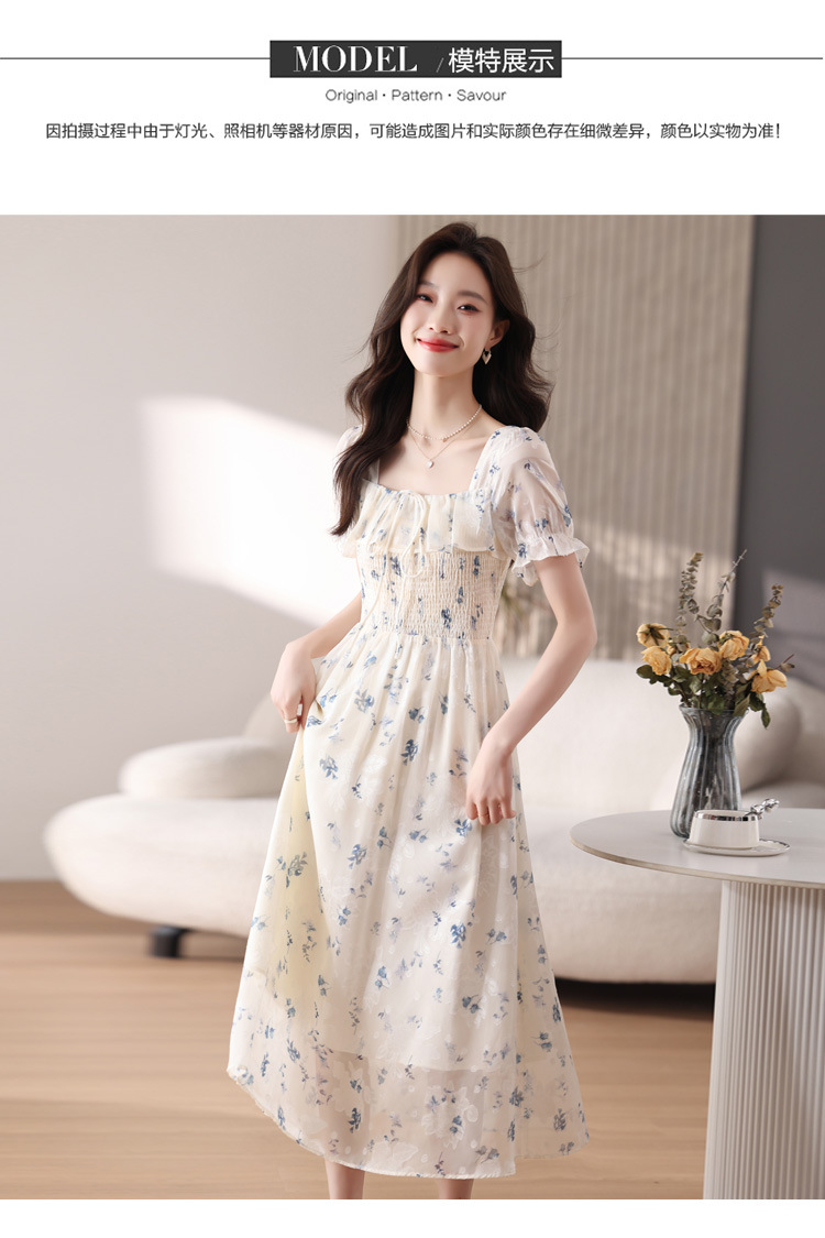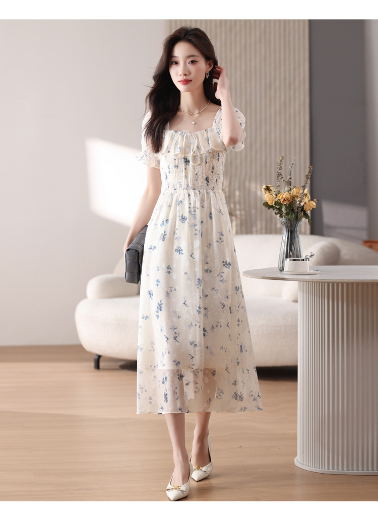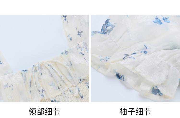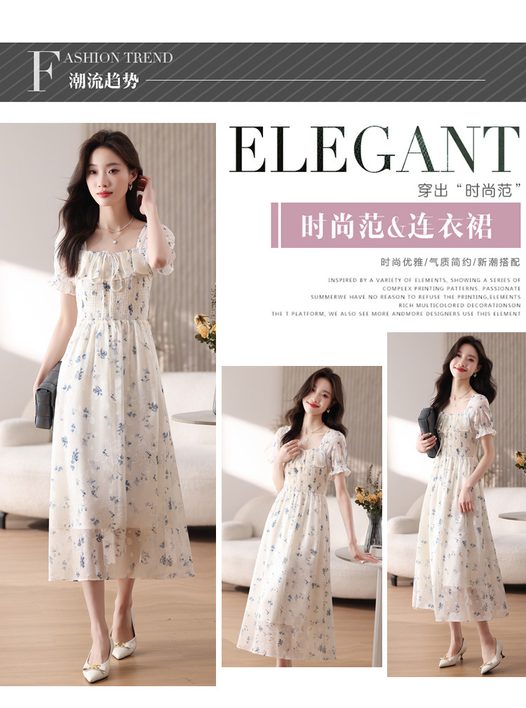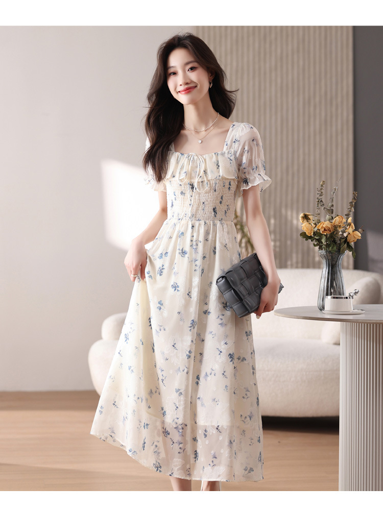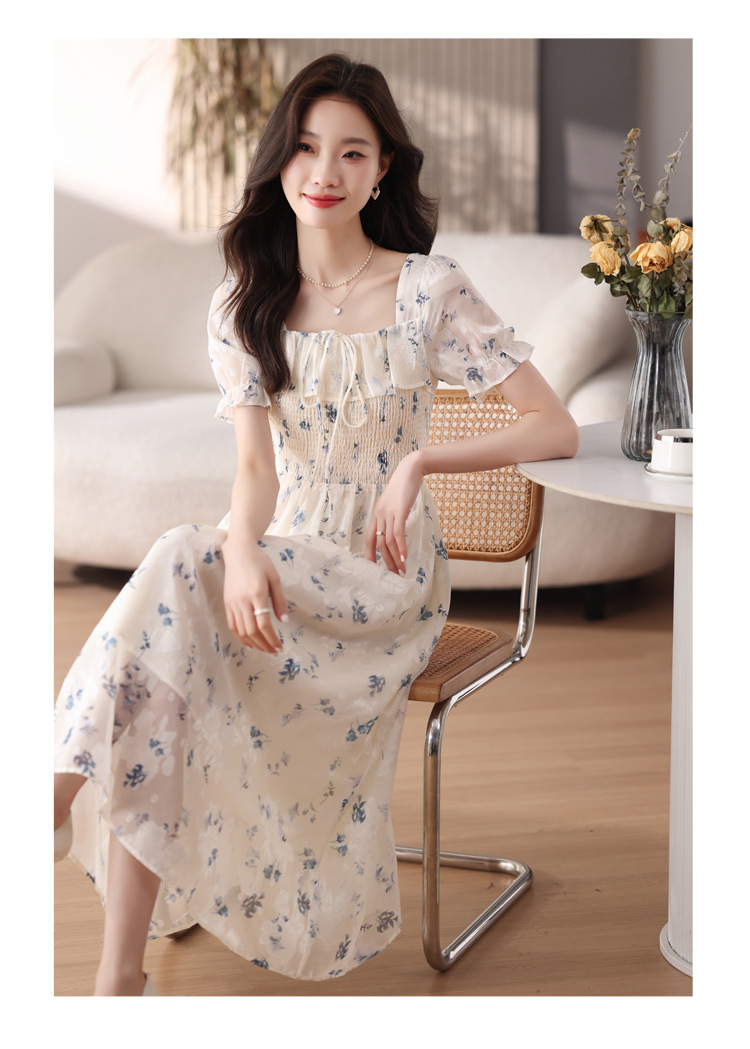 꽃 원피스 여성의 여름 새로운 쉬폰 해변 휴가 첫사랑 원피스 퍼프 소매 긴 원피스스토어 가기