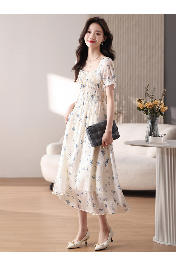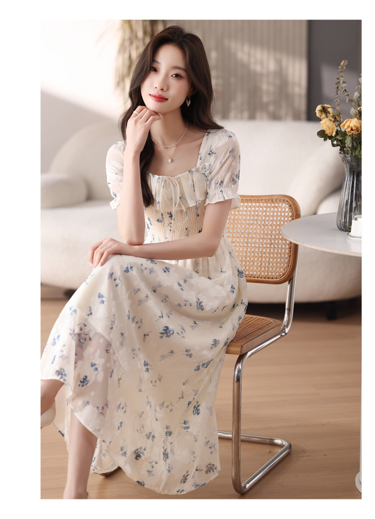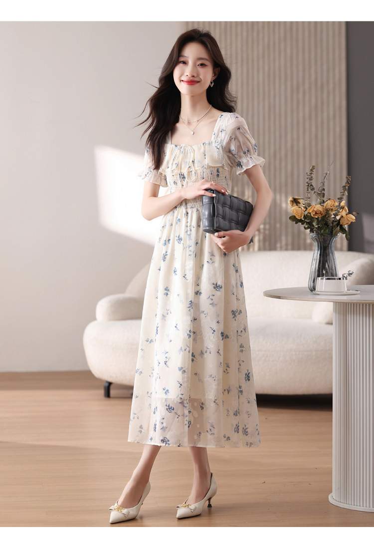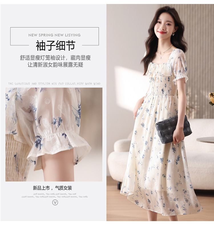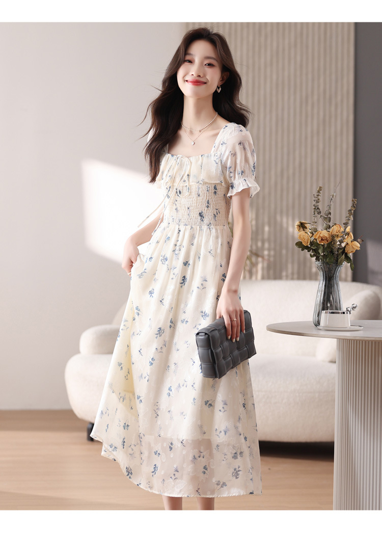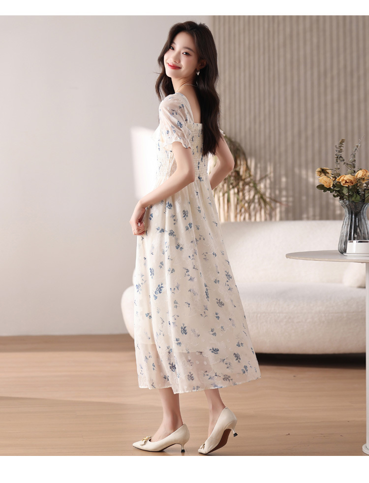 꽃 원피스 여성의 여름 새로운 쉬폰 해변 휴가 첫사랑 원피스 퍼프 소매 긴 원피스스토어 가기