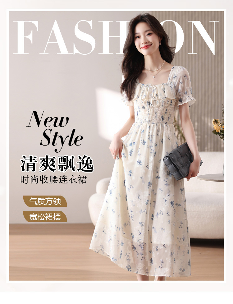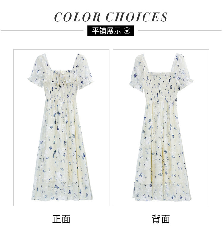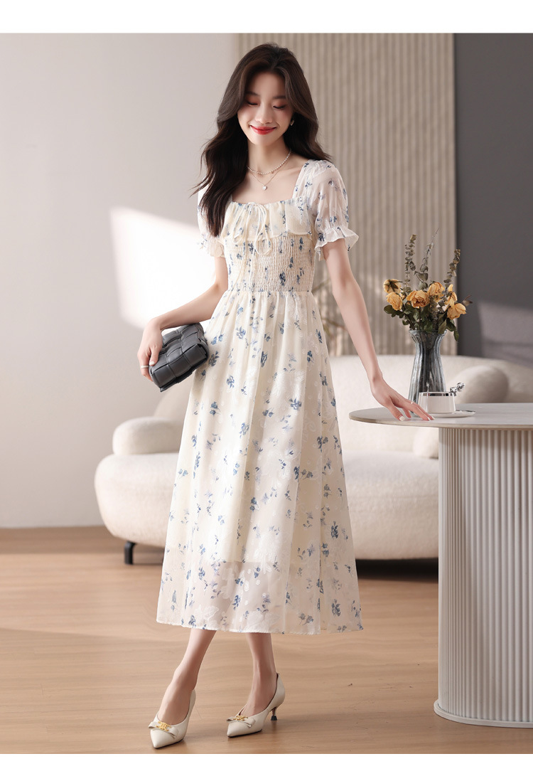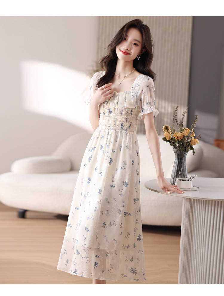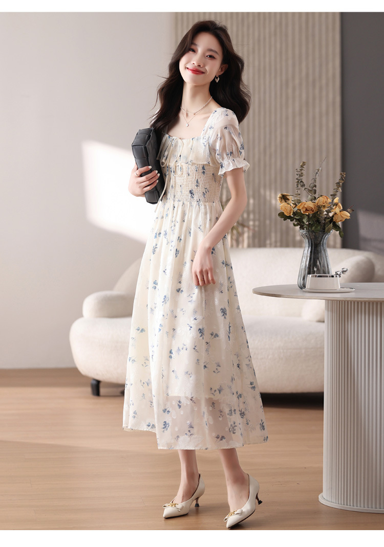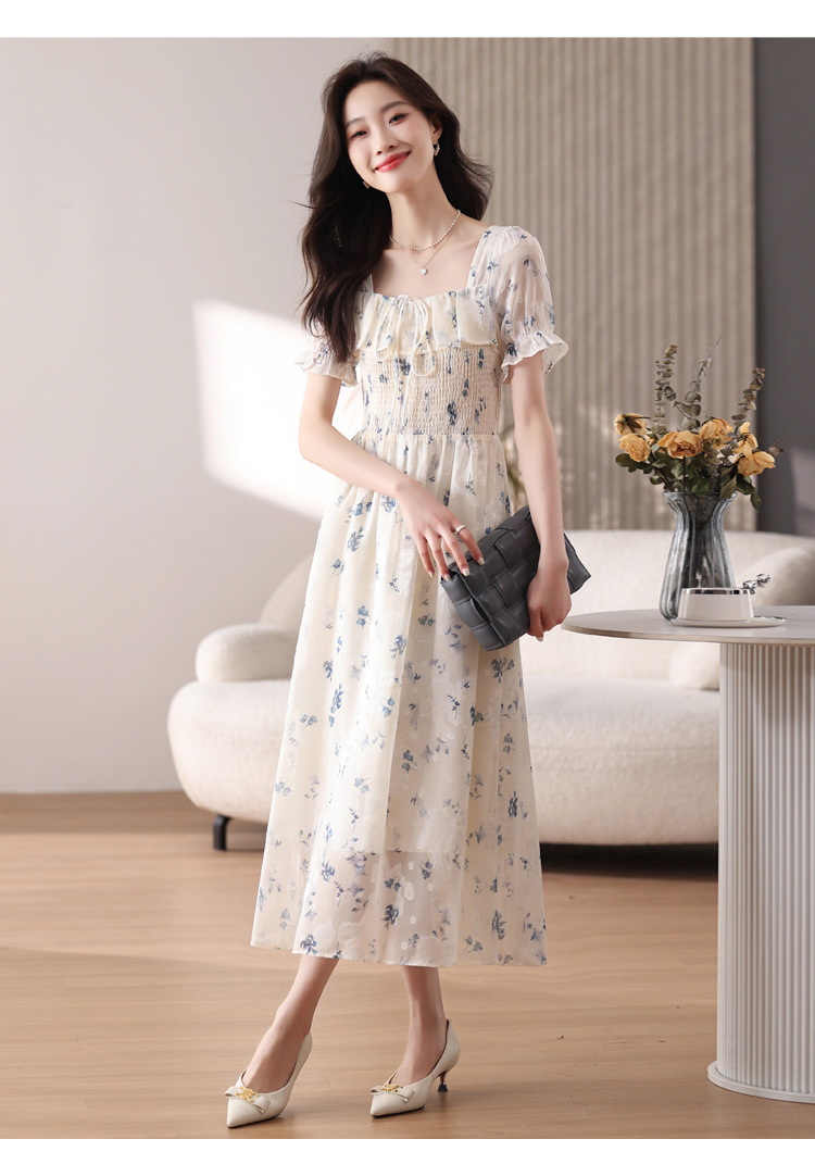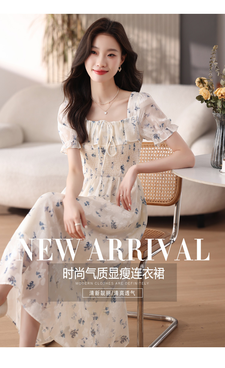 꽃 원피스 여성의 여름 새로운 쉬폰 해변 휴가 첫사랑 원피스 퍼프 소매 긴 원피스스토어 가기