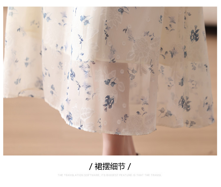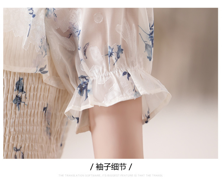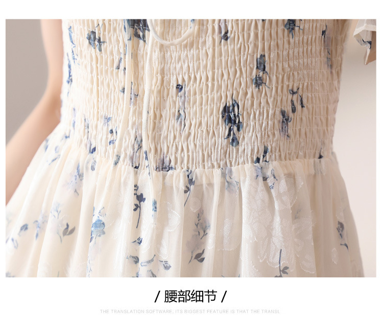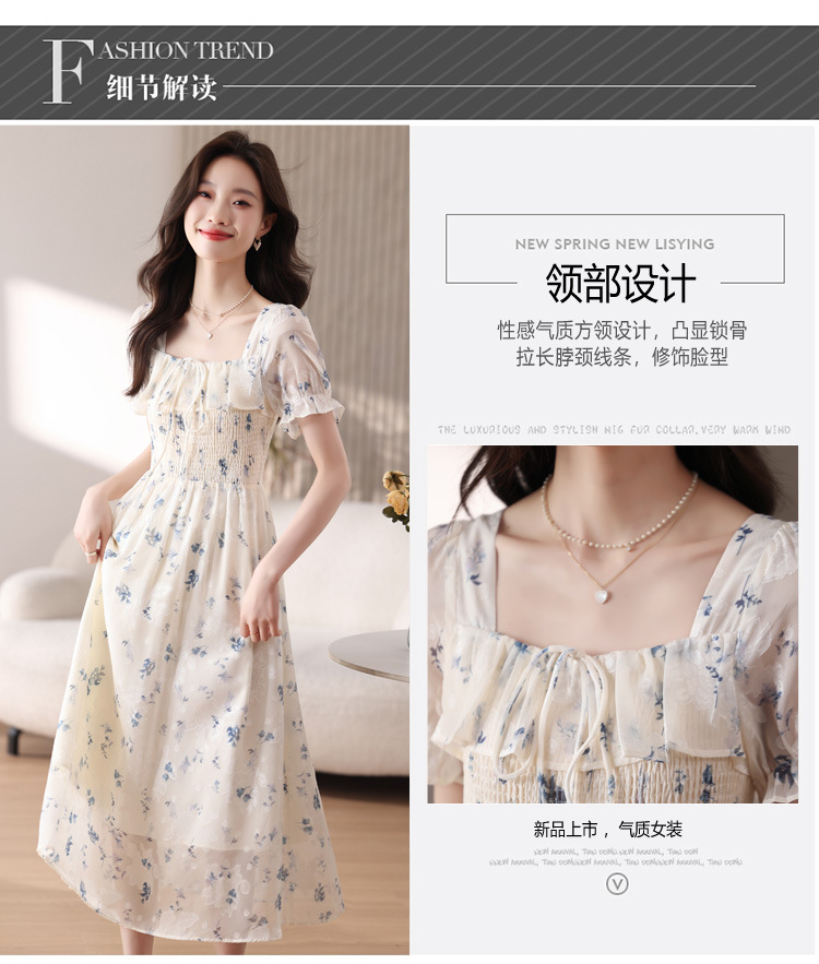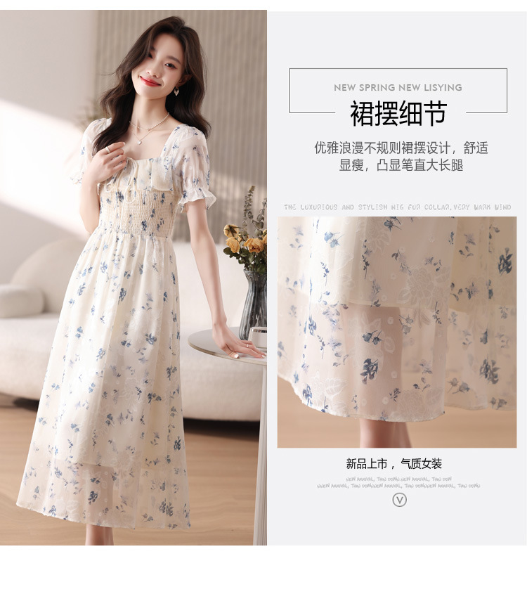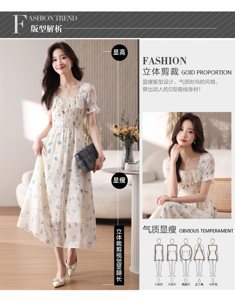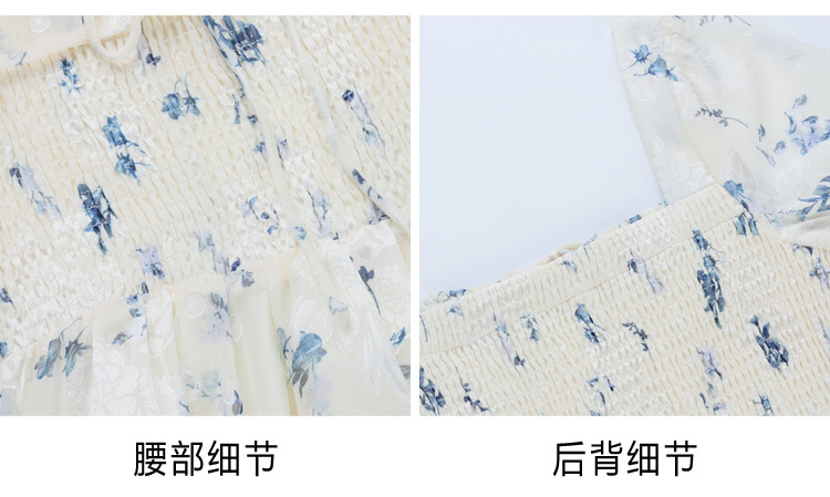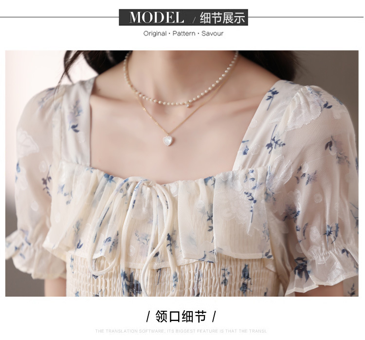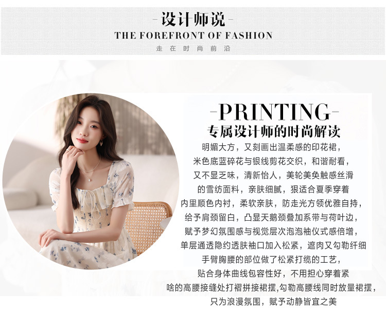꽃 원피스 여성의 여름 새로운 쉬폰 해변 휴가 첫사랑 원피스 퍼프 소매 긴 원피스스토어 가기