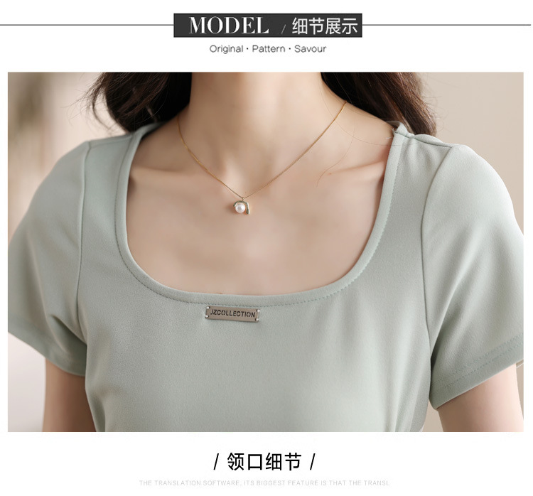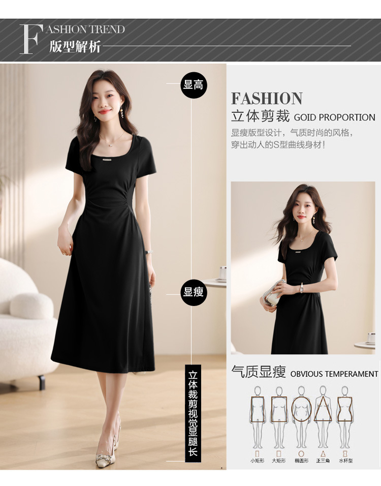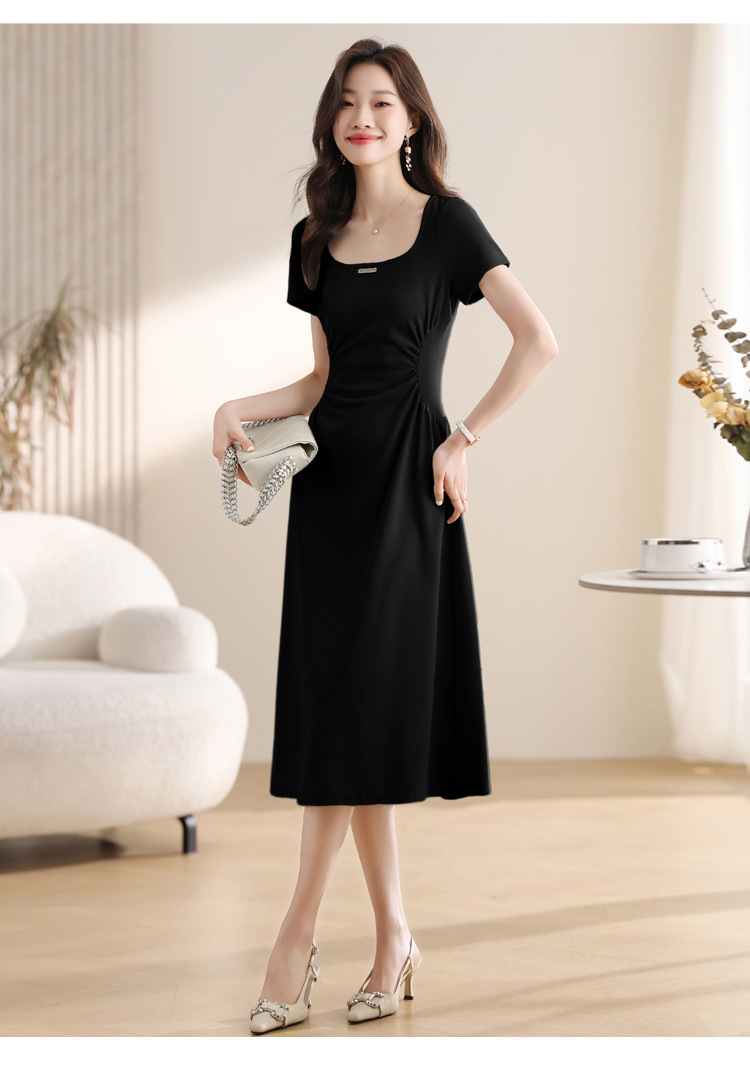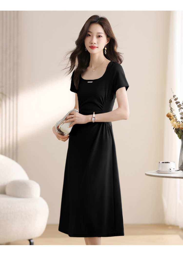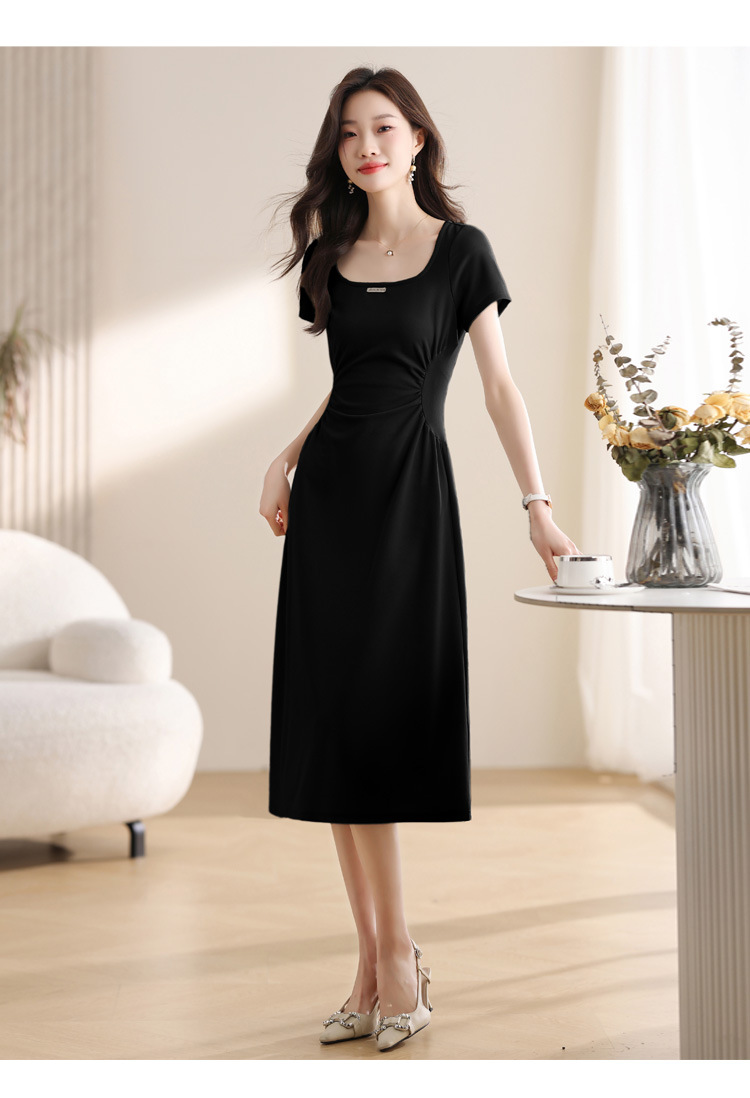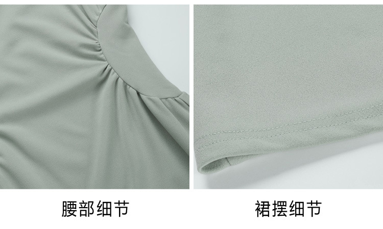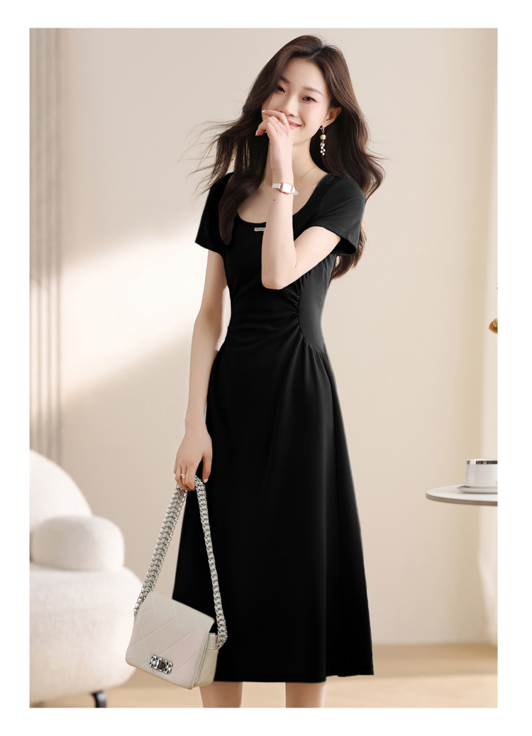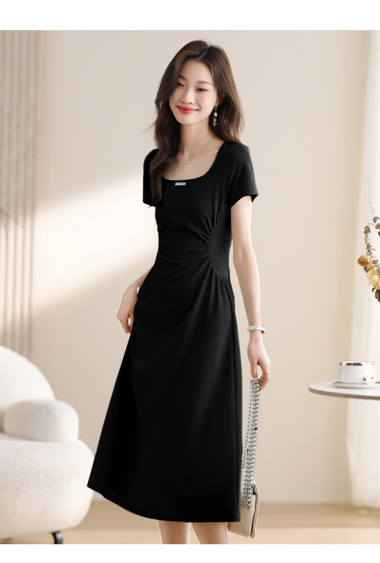 그린 스퀘어 칼라 티 브레이크 프랑스 반팔 원피스 여성 여름 새로운 허리 스타일 긴 원피스스토어 가기