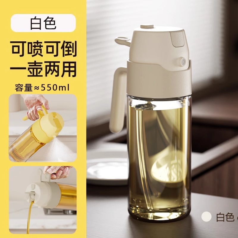 Youqin 스프레이 이중 목적 2-in -1 오일 포트 유리 오일 병 매운 병 누출 방지 오일 주방 간장 식초 중력 오일 탱크