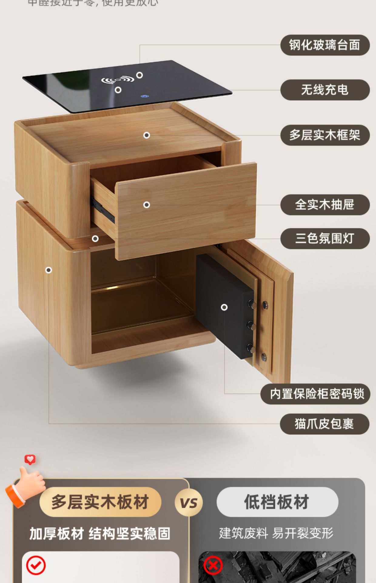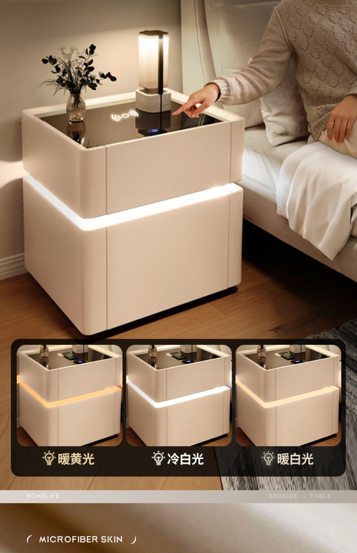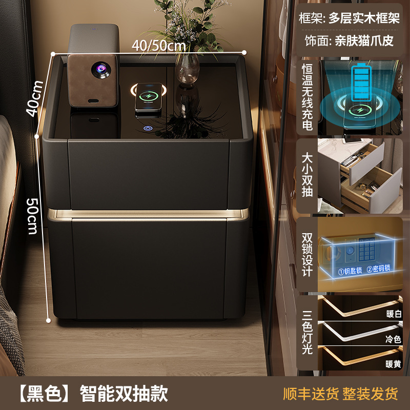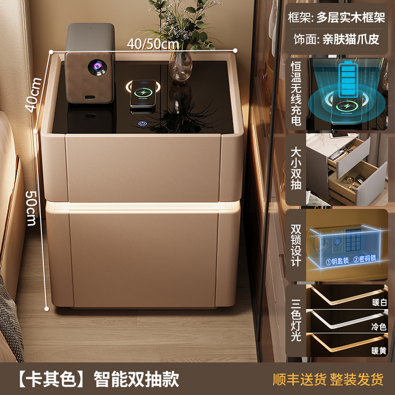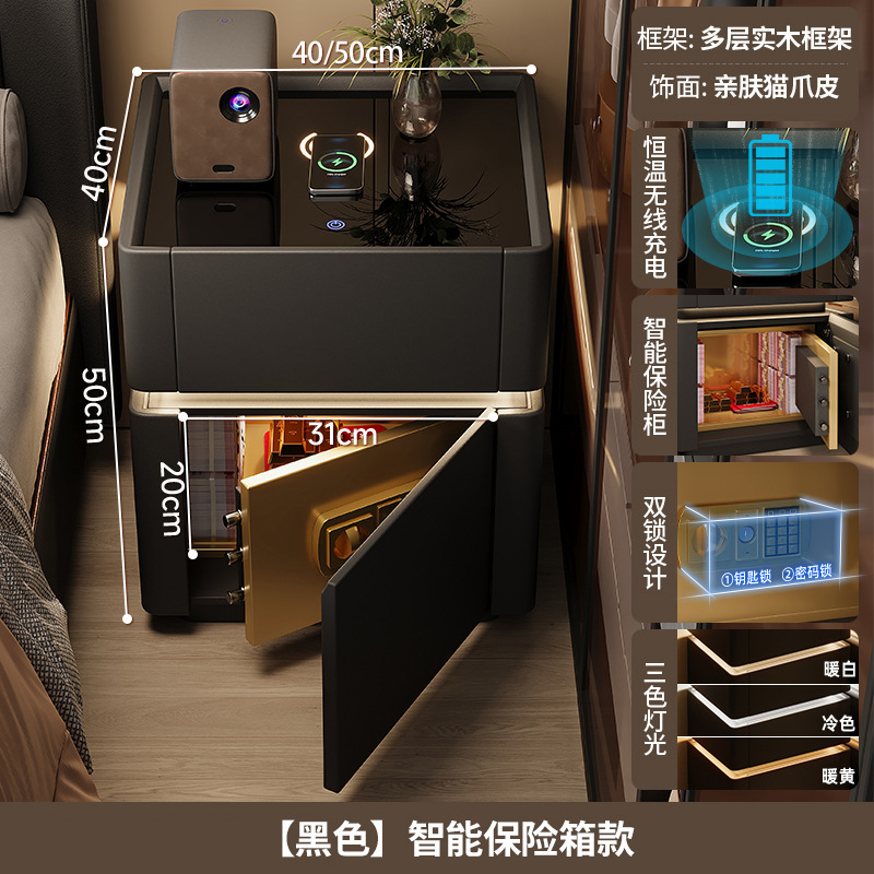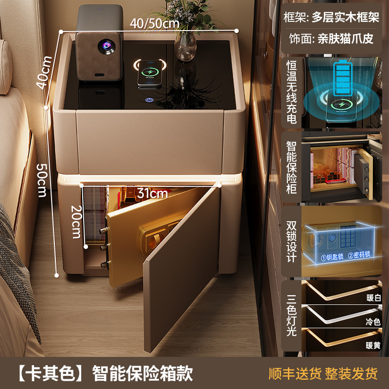 침대 옆 테이블 스마트 안전한 고급 고급 고급 고급 보관 캐비닛 침실 크림 스타일 스토리지 랙 침대 옆 캐비닛