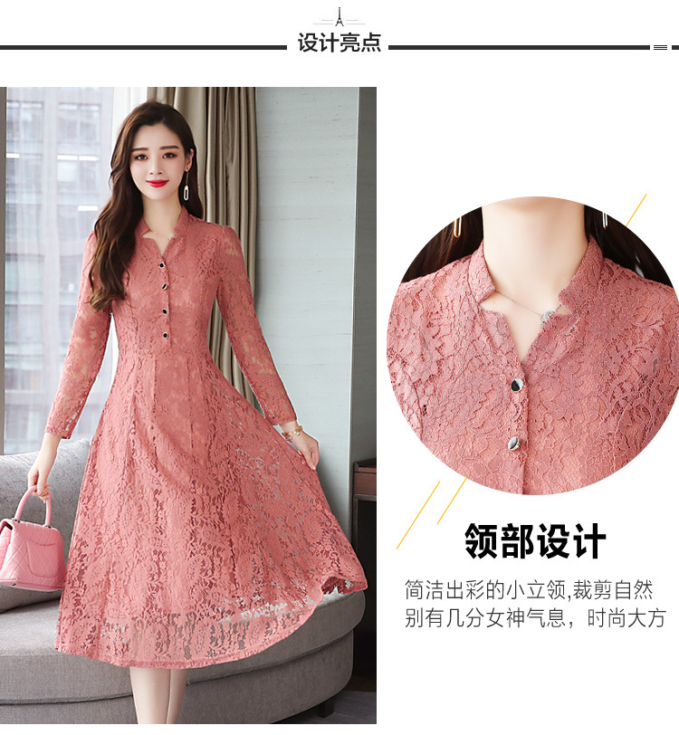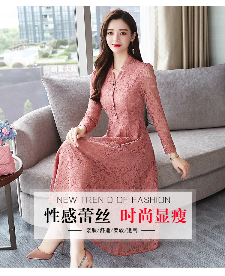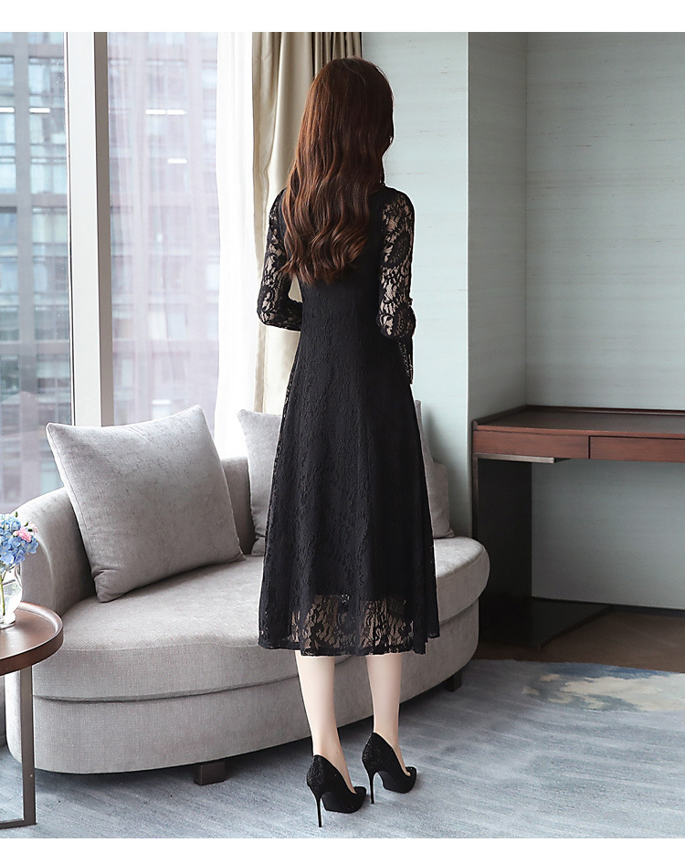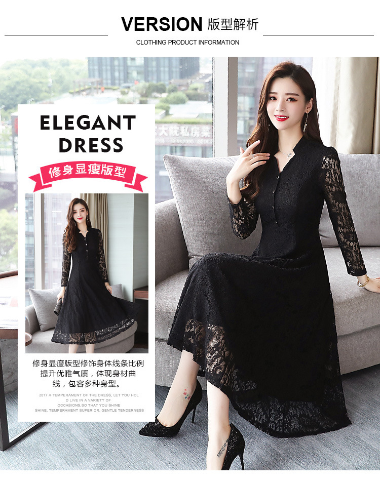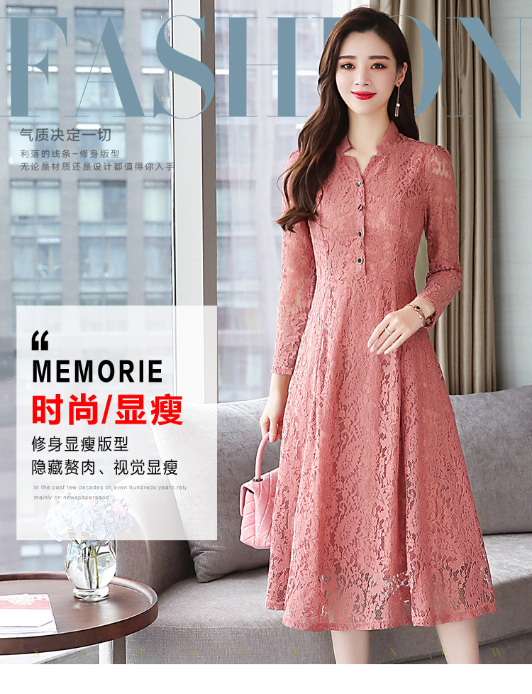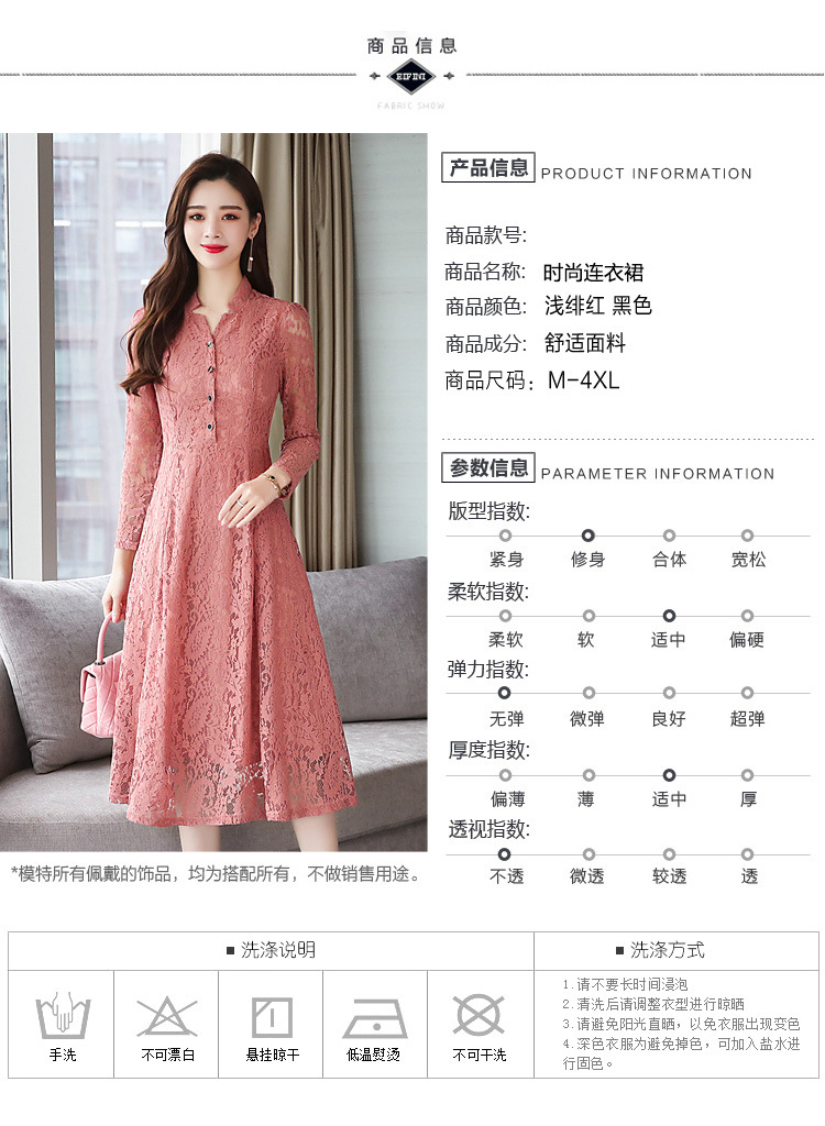 가을 새로운 레이스 슬림 핏 우아한베이스 여성의 단색 긴팔 플러스 사이즈 원피스 어머니 원피스스토어 가기