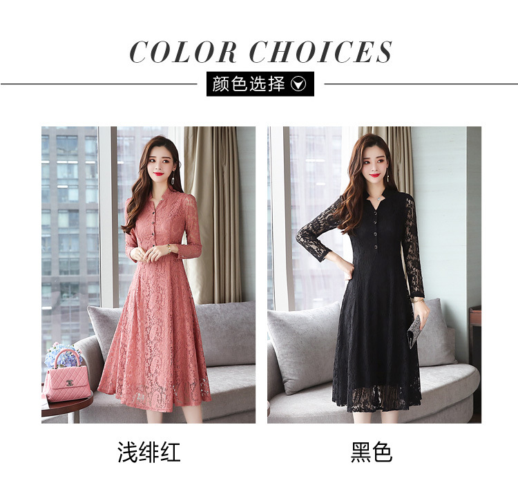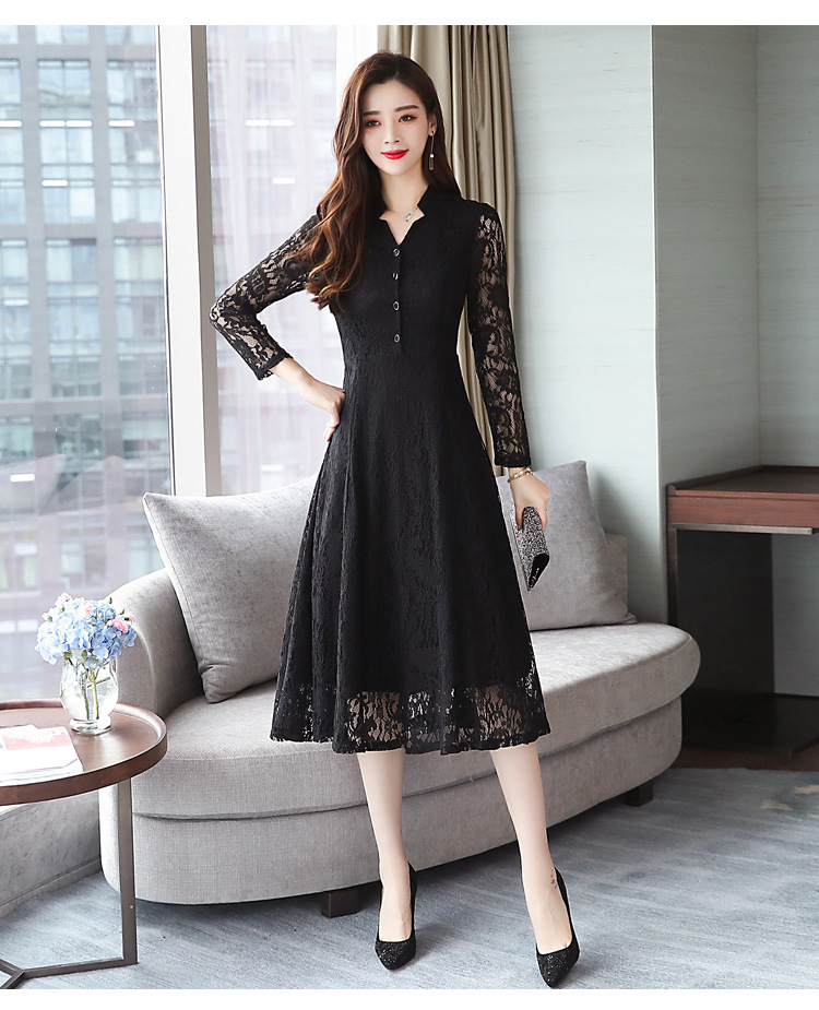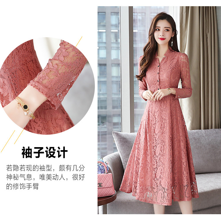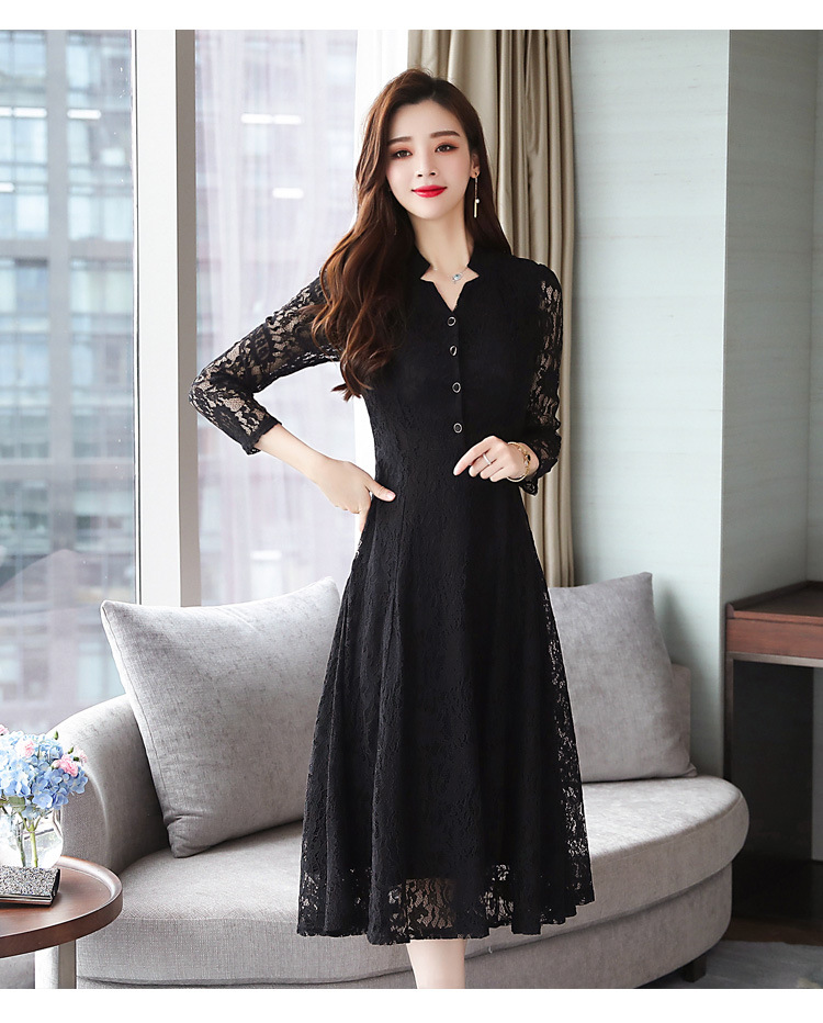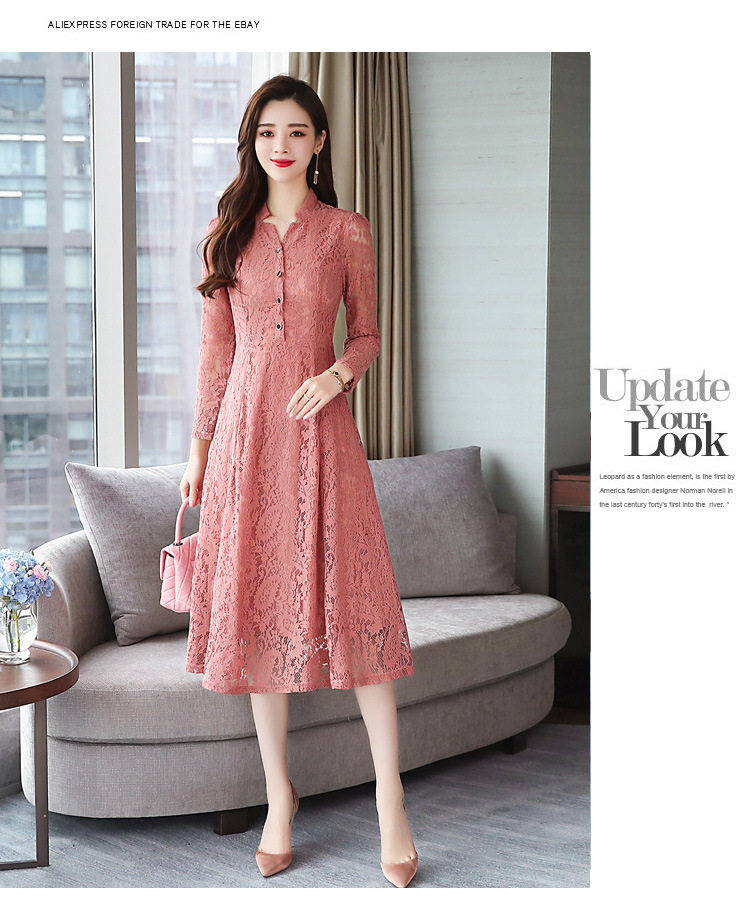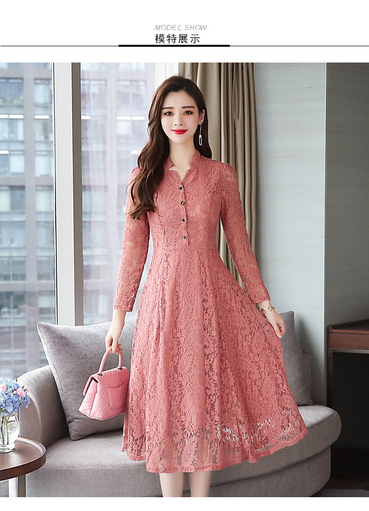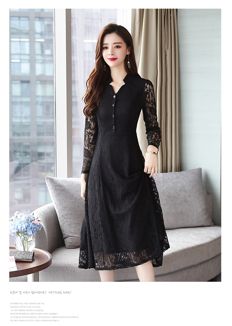 가을 새로운 레이스 슬림 핏 우아한베이스 여성의 단색 긴팔 플러스 사이즈 원피스 어머니 원피스스토어 가기