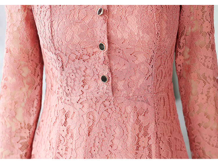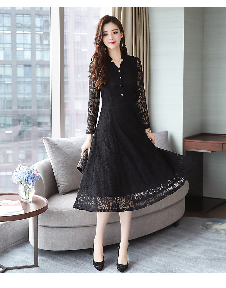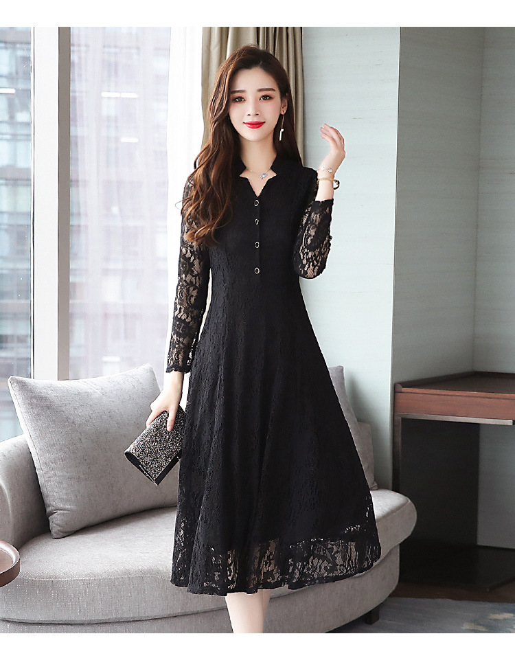 가을 새로운 레이스 슬림 핏 우아한베이스 여성의 단색 긴팔 플러스 사이즈 원피스 어머니 원피스