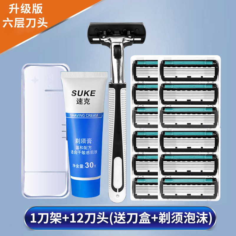 요코카 요코카 6 층 면도 블레이드 면도기 수동 수염 블레이드 베어링 면도 6 층 헤드스토어 가기