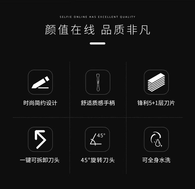 • 칼 홀더 1개, 칼 머리 9개 + 수염 페이스트 + 칼 상자(6겹 칼날)