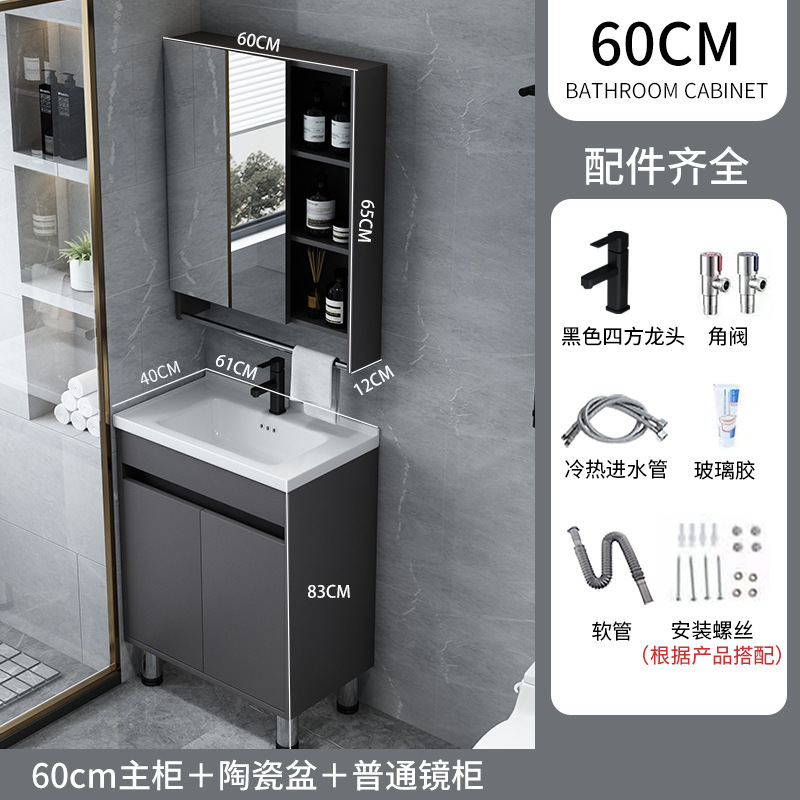 • 61*40 세라믹 세면대 + 일반 거울 캐비닛 + 수도꼭지 액세서리