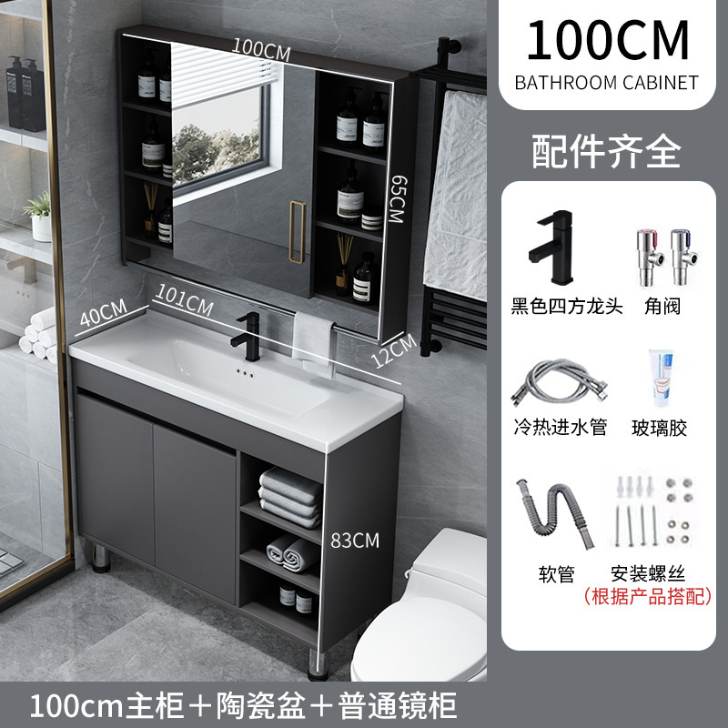 • 101*40 세라믹 세면대 + 일반 거울 캐비닛 + 수도꼭지 액세서리