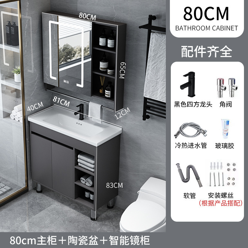 • 81*40 세라믹 세면대 + 스마트 거울 캐비닛 + 수도꼭지 액세서리