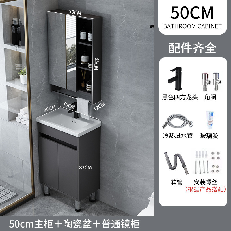• 50*36 세라믹 세면대 + 일반 거울 캐비닛 + 수도꼭지 액세서리