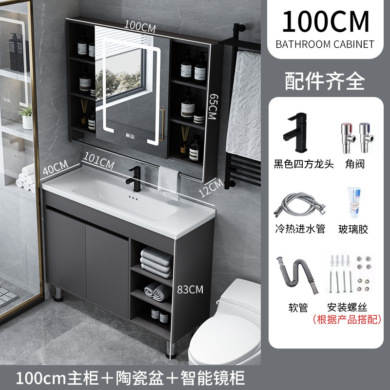 • 101*40 세라믹 세면대 + 스마트 거울 캐비닛 + 수도꼭지 액세서리