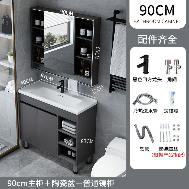• 91*40 세라믹 세면대 + 일반 거울 캐비닛 + 수도꼭지 액세서리