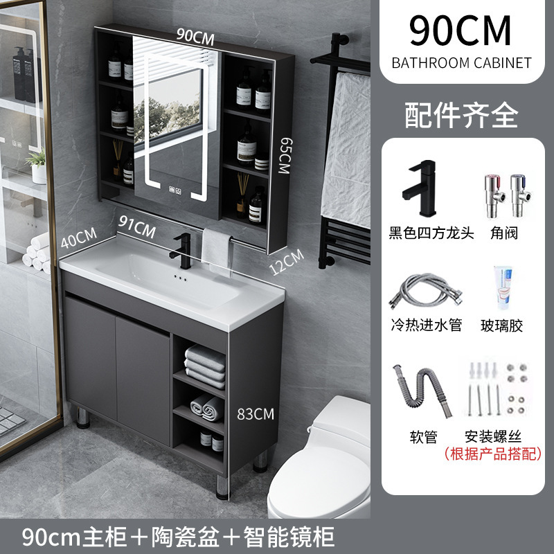 • 91*40 세라믹 세면대 + 스마트 거울 캐비닛 + 수도꼭지 액세서리