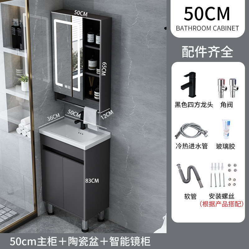 • 50*36 세라믹 세면대 + 스마트 거울 캐비닛 + 수도꼭지 액세서리
