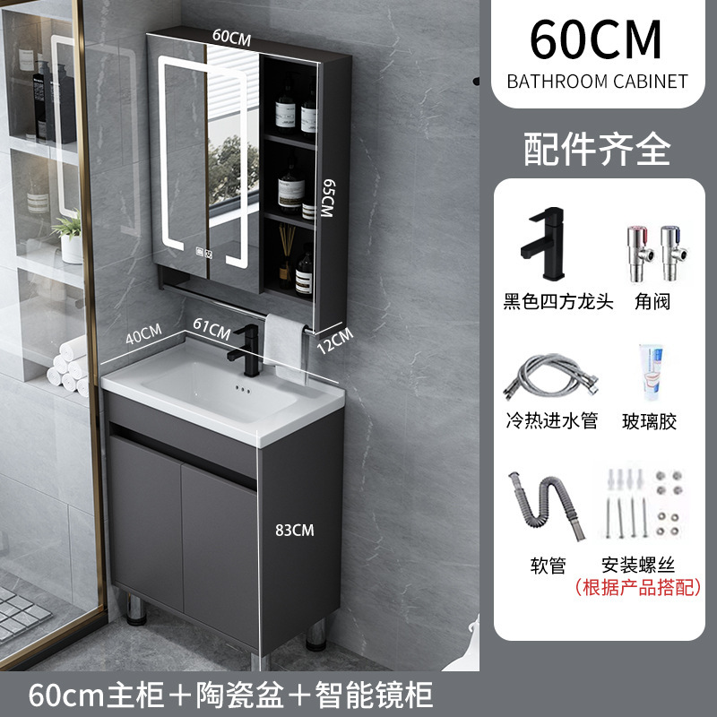 • 61*40 세라믹 세면대 + 스마트 거울 캐비닛 + 수도꼭지 액세서리