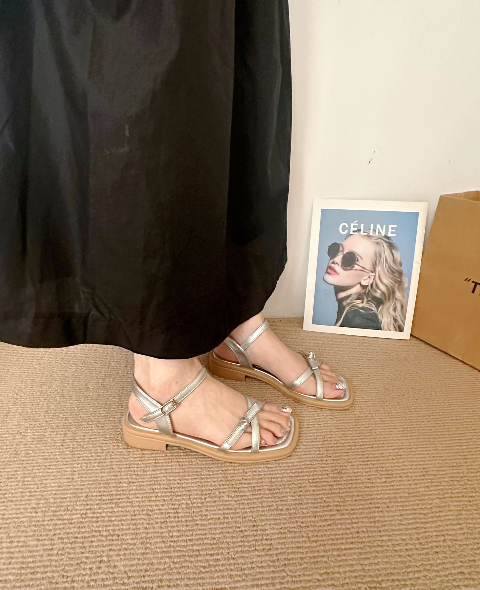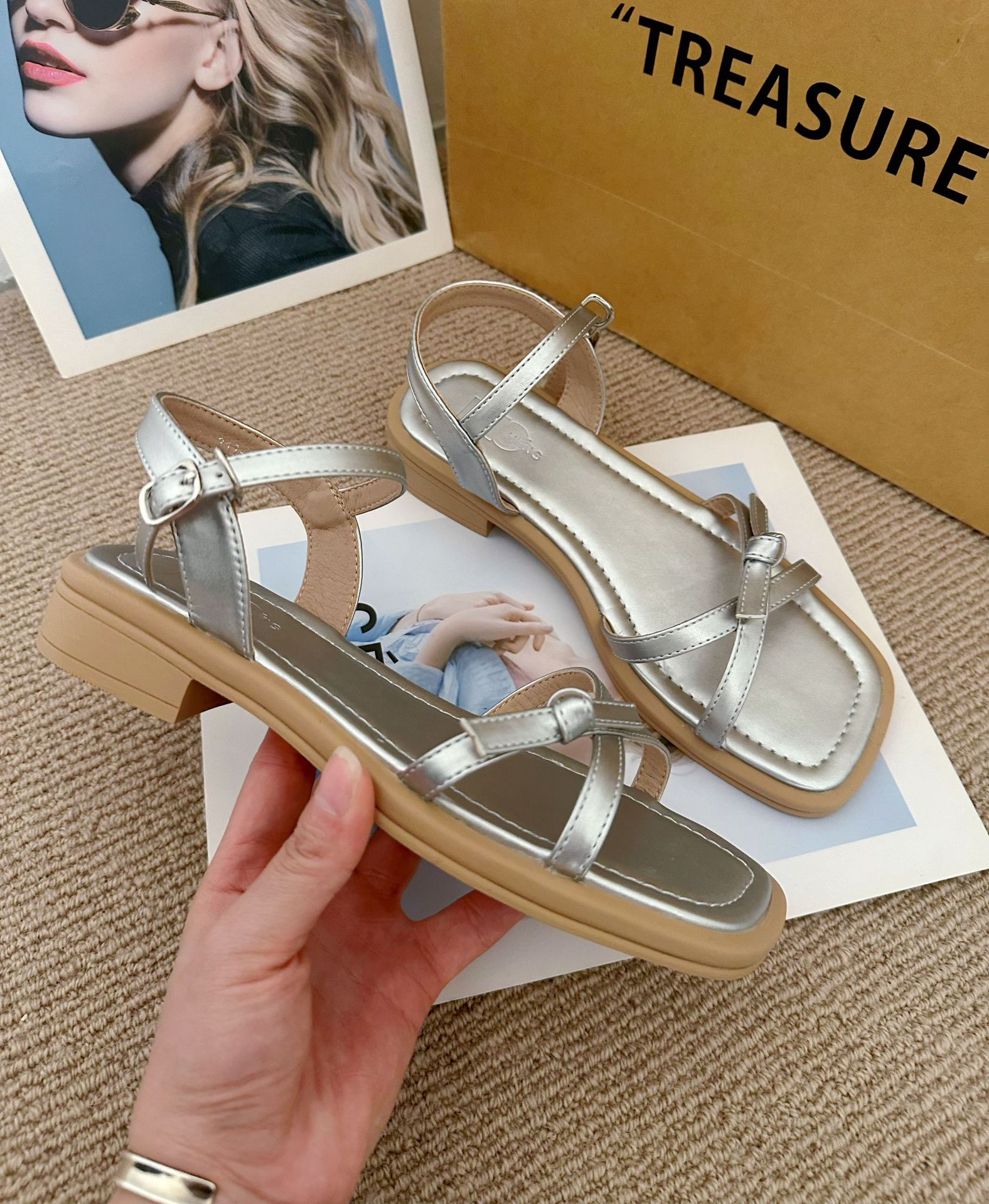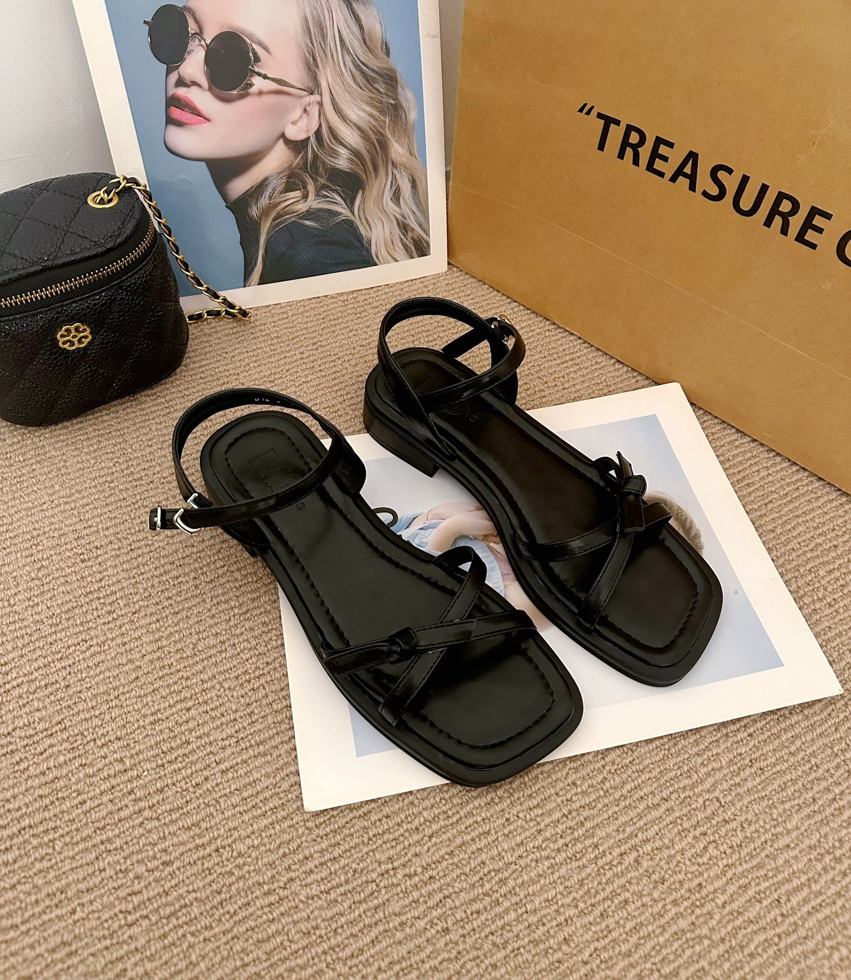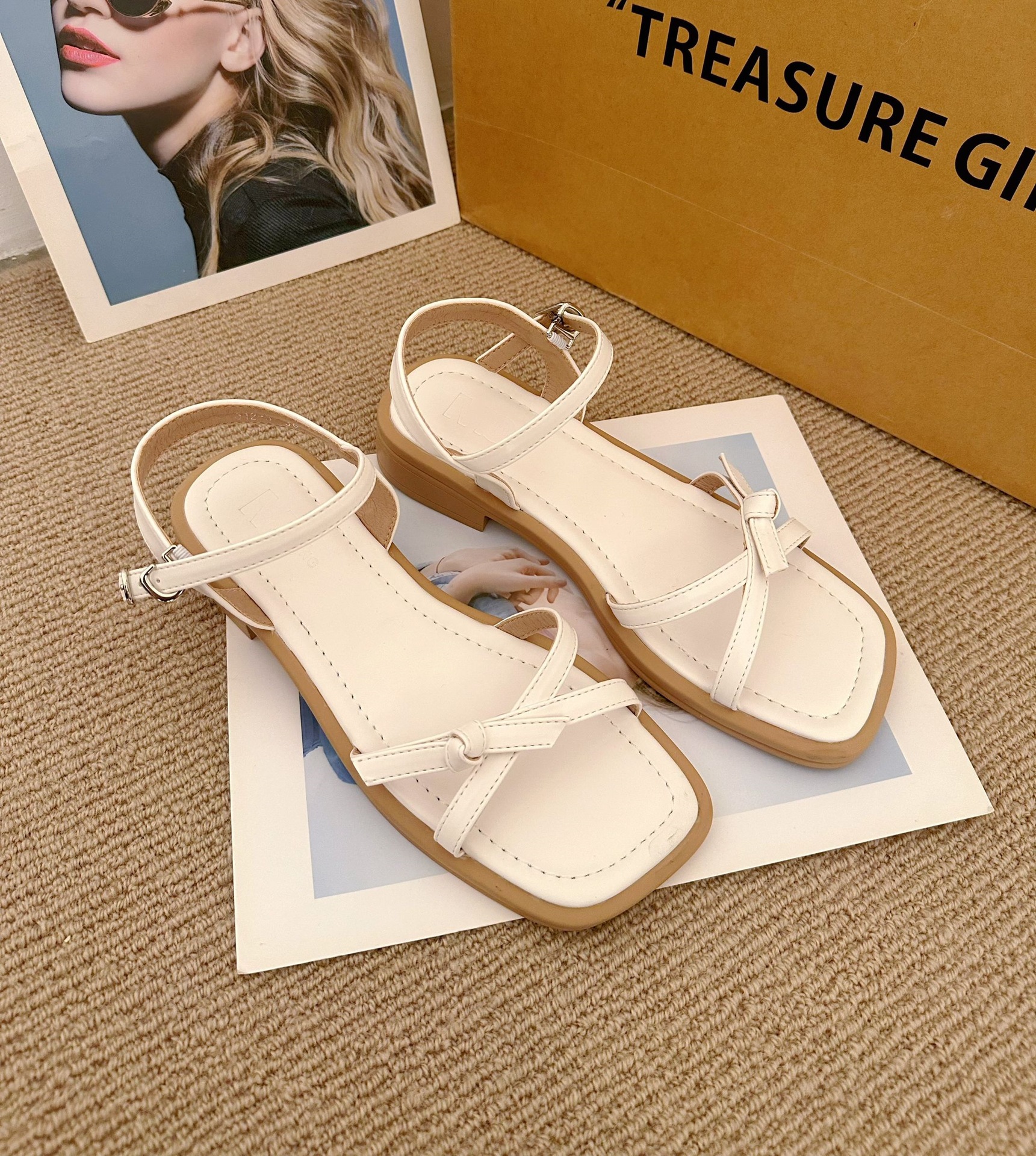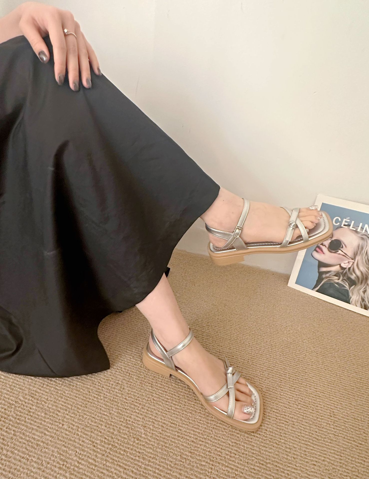 2025 여성 여름 프랑스 간단한 스퀘어 힐 신발 스커트 활 로마 스퀘어 발가락 샌들스토어 가기