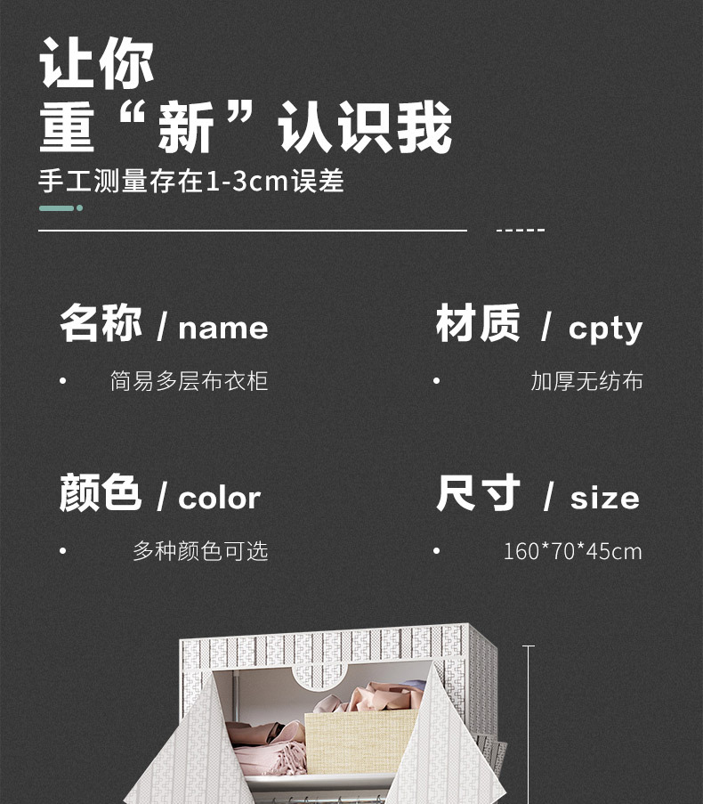 ✅옷장 간단한 천 옷장 기숙사 스몰 사이즈 렌탈 룸 패브릭 어셈블리 캐비닛 접이식 단일 저장 옷 교수형스토어 가기