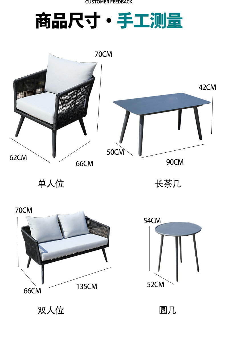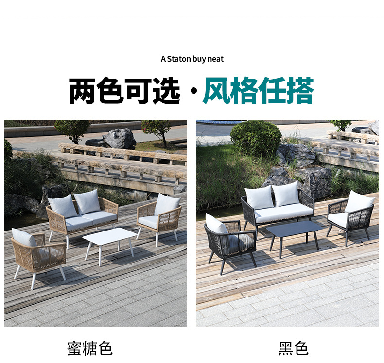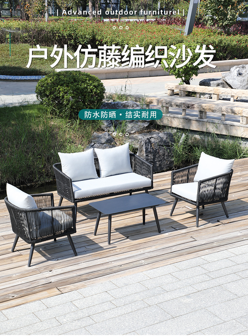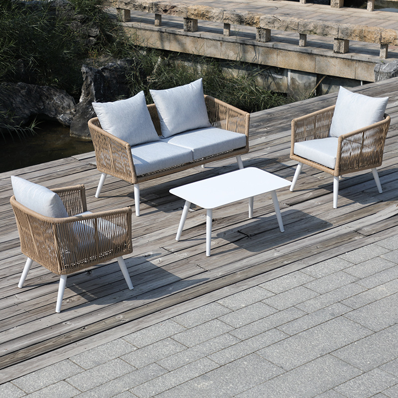 야외 레저 등나무 소파 안뜰 가구 홈스테이 야외 정원 테라스 발코니 등나무 의자 소파 4 피스 세트