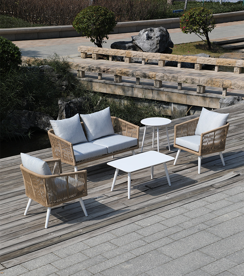 야외 레저 등나무 소파 안뜰 가구 홈스테이 야외 정원 테라스 발코니 등나무 의자 소파 4 피스 세트스토어 가기