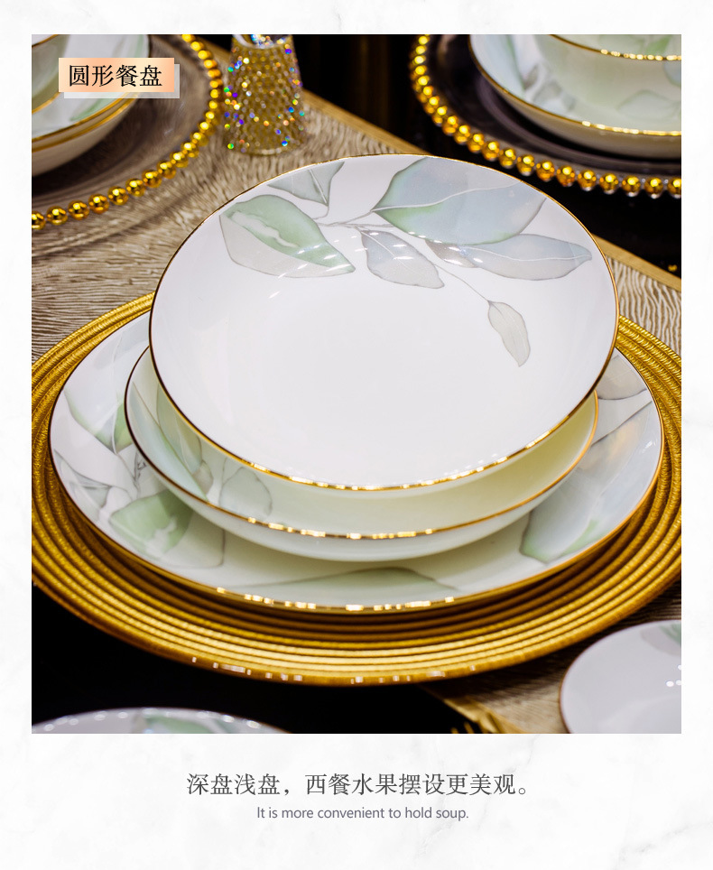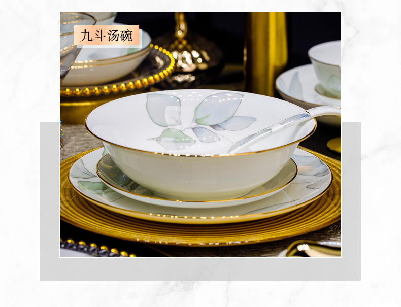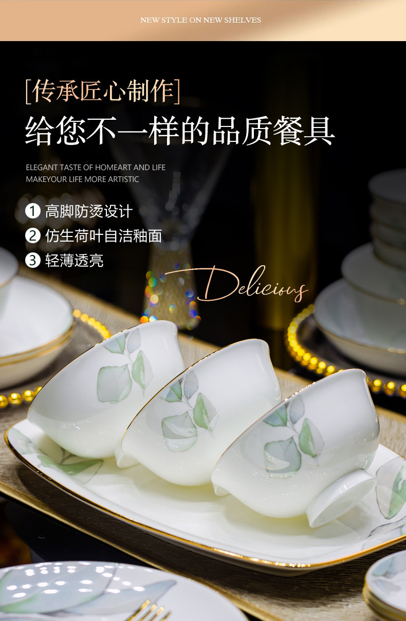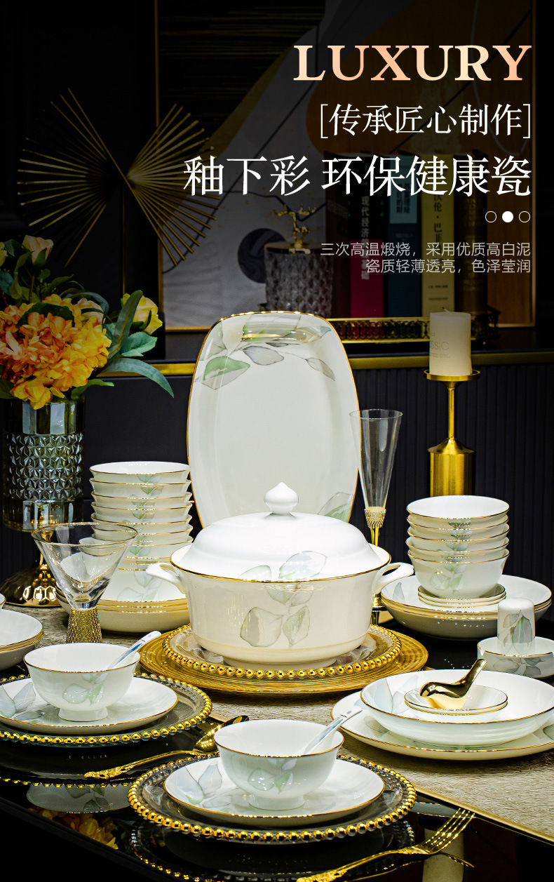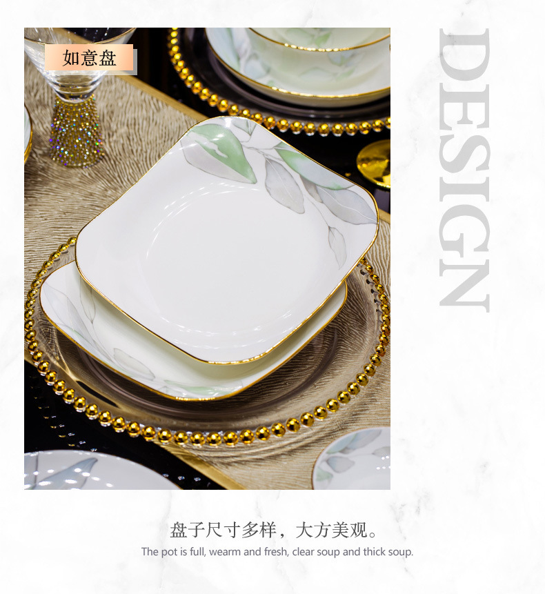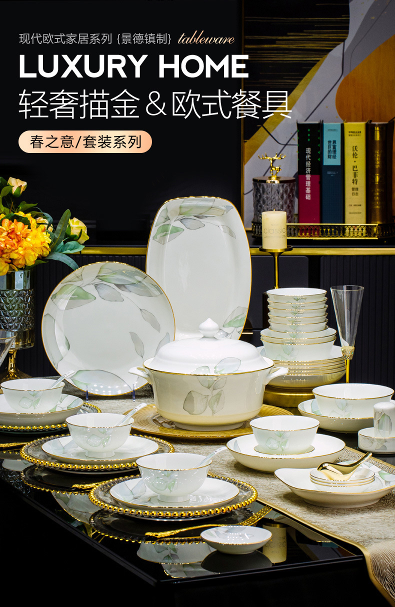 새로운 도착 요리 세트 봄 스타일 가구 중국 스타일 가벼운 고급 집들이 세라믹 그릇 젓가락 그릇 그릇 접시 뼈 중국 식기 DIY