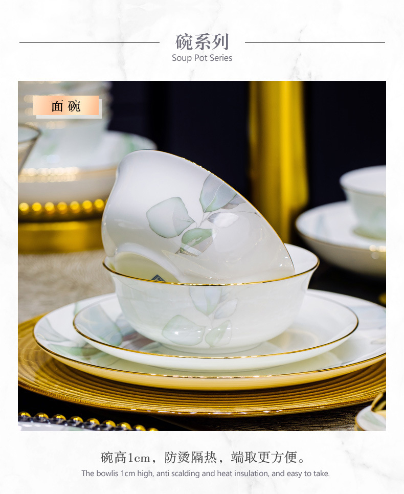새로운 도착 요리 세트 봄 스타일 가구 중국 스타일 가벼운 고급 집들이 세라믹 그릇 젓가락 그릇 그릇 접시 뼈 중국 식기 DIY스토어 가기