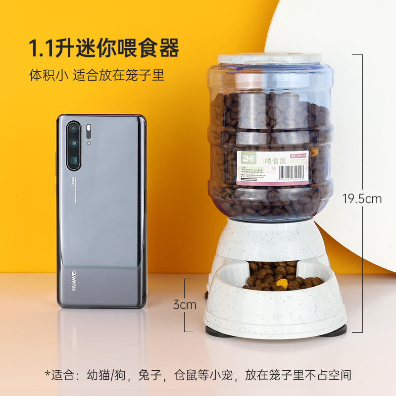 • 1.1리터 피더[소형 애완동물용]는 휴대폰보다 약간 큽니다.